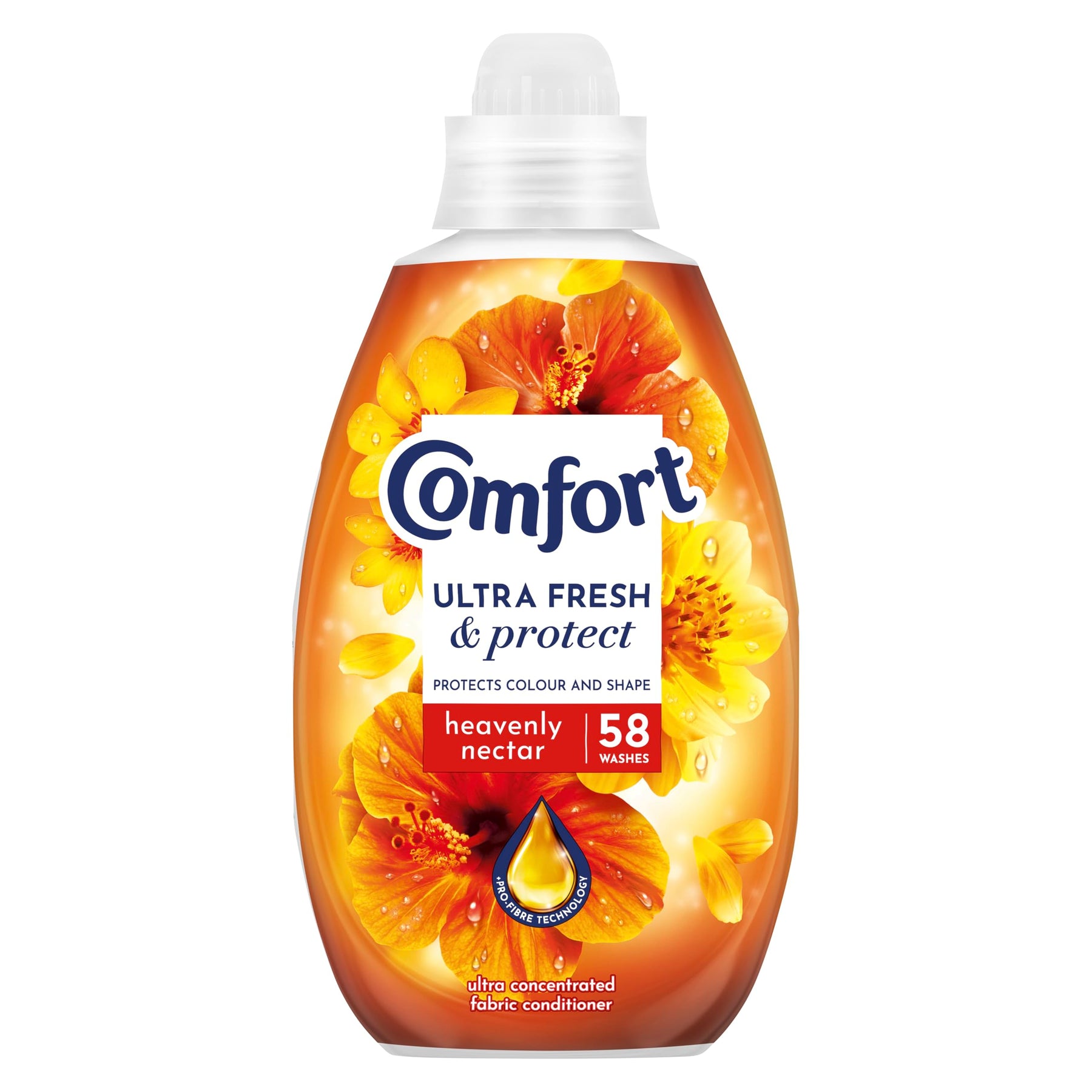 Indulge in a multisensory laundry experience with Comfort Ultra Fresh & Protect Heavenly Nectar Fabric Conditioner, offering ultimate care and protection for your clothes. Powered by revolutionary pro-fibre technology, this ultra-concentrated formula strengthens fibres, locks in colours, and helps garments retain their shape from the first wash.*