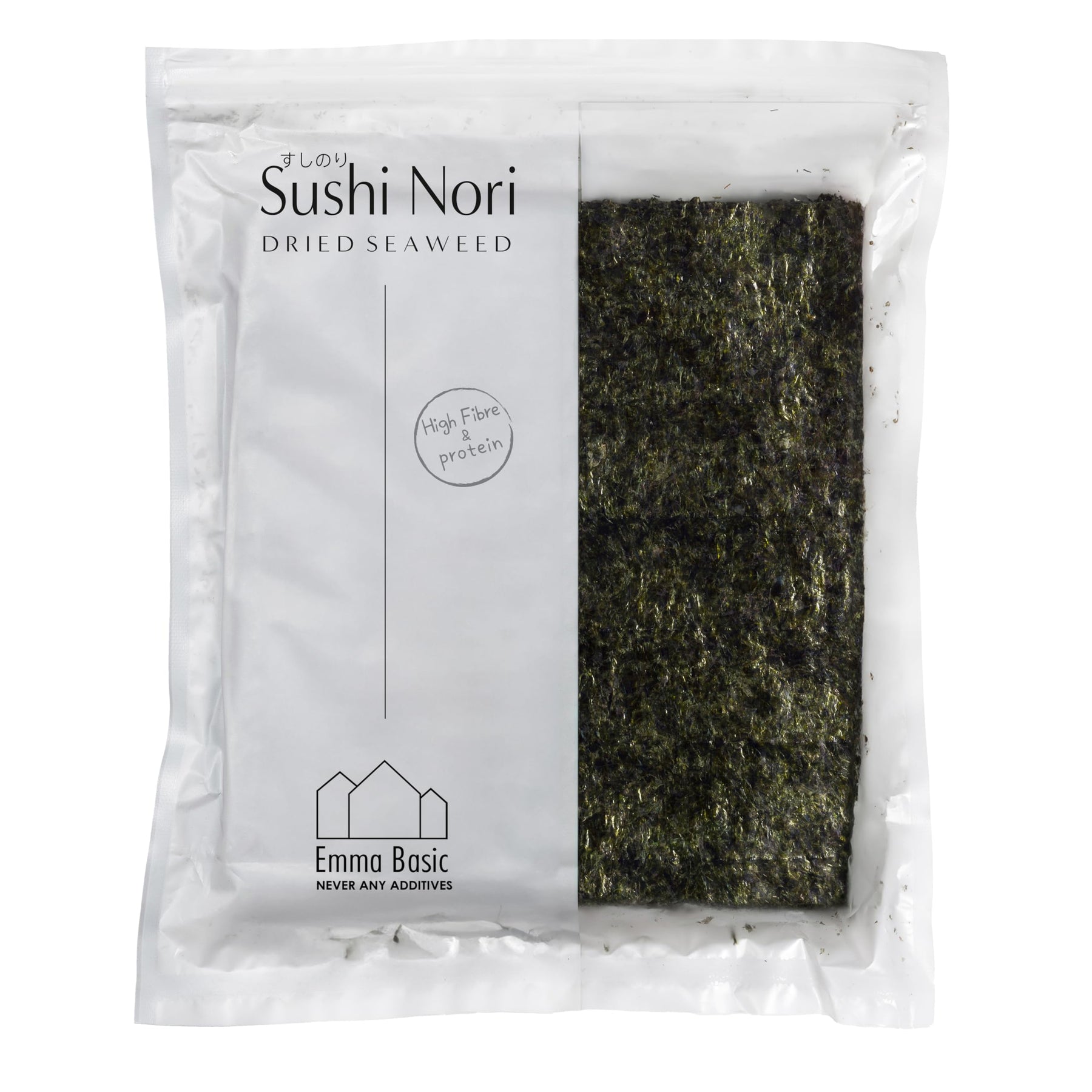 Emma Basic South Korean Seaweed Sushi Nori is made from premium seaweed harvested at the beginning of the season, ensuring a tender texture and rich umami flavor. Ideal for sushi rolls, rice wraps, ramen toppings, or salads, this nori delivers authentic taste and high nutritional value. Each pack contains 50 full sheets, carefully sealed in zip lock packaging to protect against moisture and preserve freshness.