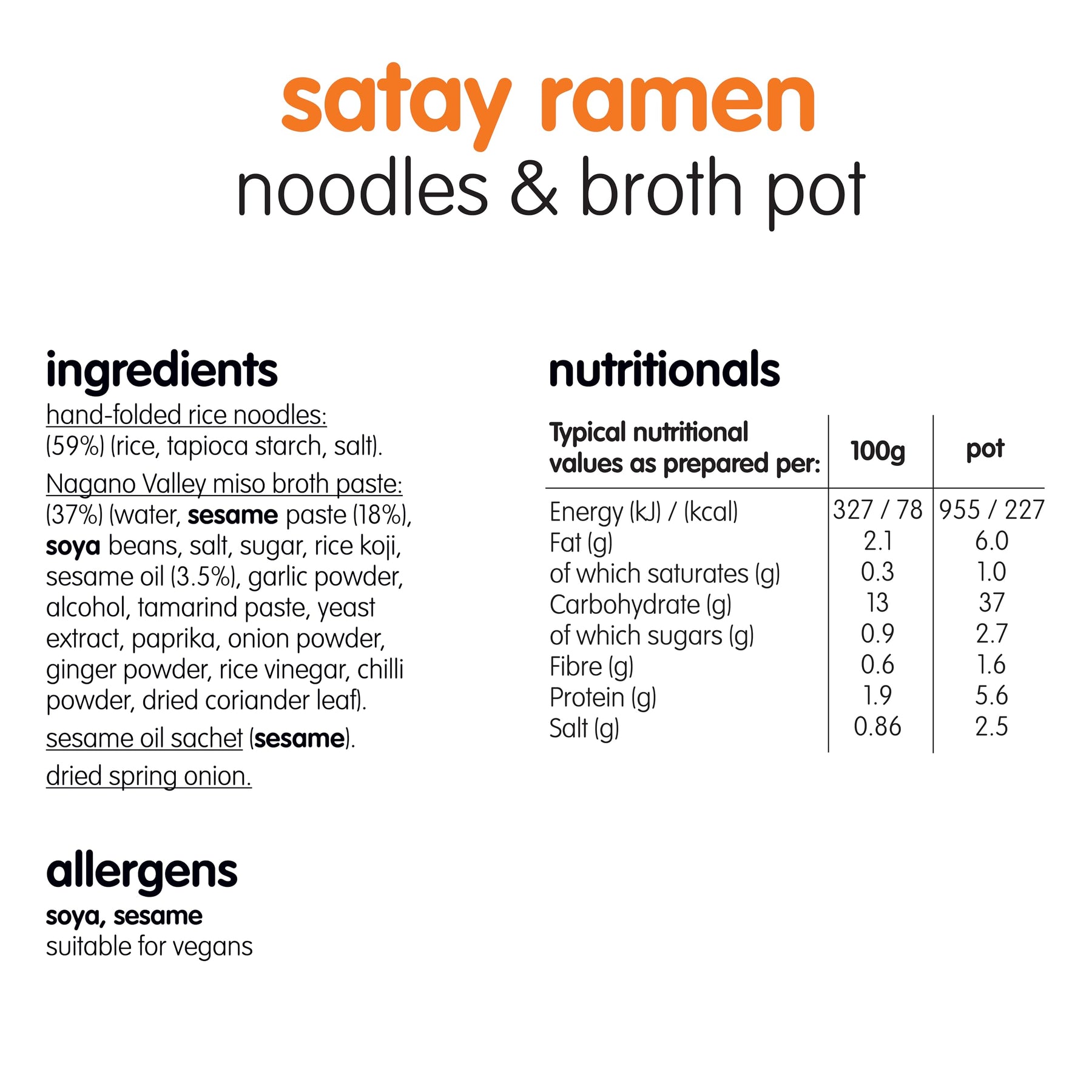 • Restaurant-inspired satay style noodles & broth developed with Monica Galetti