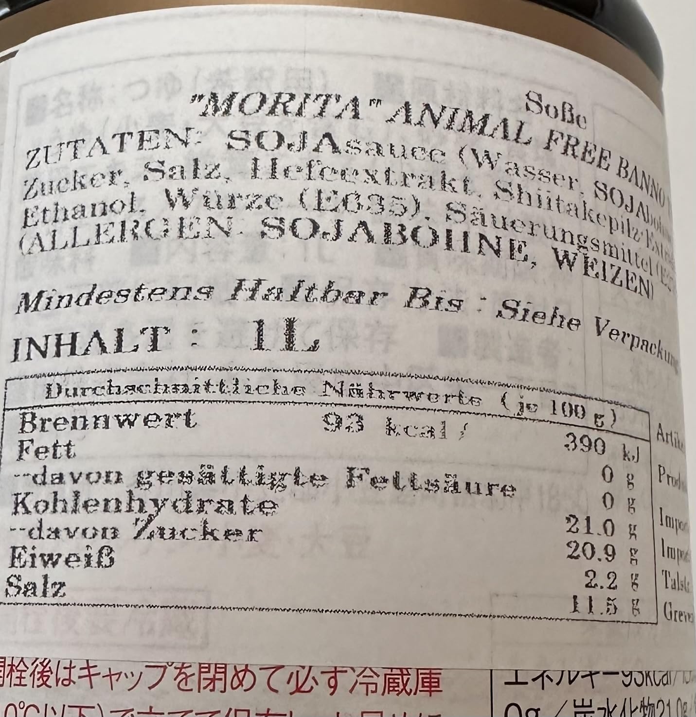 - Ingredients: Water, Soy Sauce (Water, Defatted SOYBEANS, WHEAT, Salt, SOYBEANS), Sugar, Salt, Ethyl Alcohol, Yeast Extract (Yeast Extract, Extrin, Salt), Shiitake Mushroom Extract (Dextrin, Shiitake Mushroom, Salt, Hydrolysed WHEAT Protein, Yeast Extract), Flavour Enhancer E635, Kelp Extract (Kelp, Salt), Acids E270 and E260
