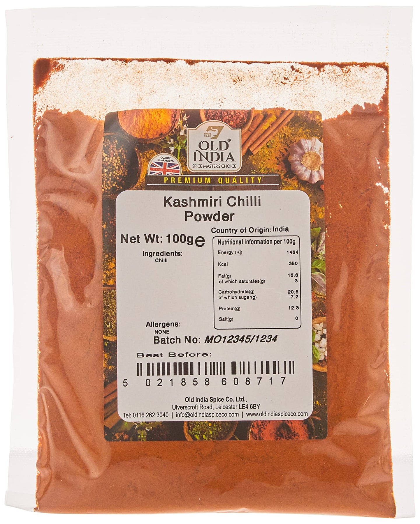 Old India Kashmiri Chilli Powder is a 100% natural, additive-free, and GMO-free spice sourced from the origin of the ingredient. Packed in a heat-sealed bag to preserve freshness, it offers a vibrant red color and rich flavor, ideal for enhancing curries, vegetable dishes, sauces, soups, stews, and more.