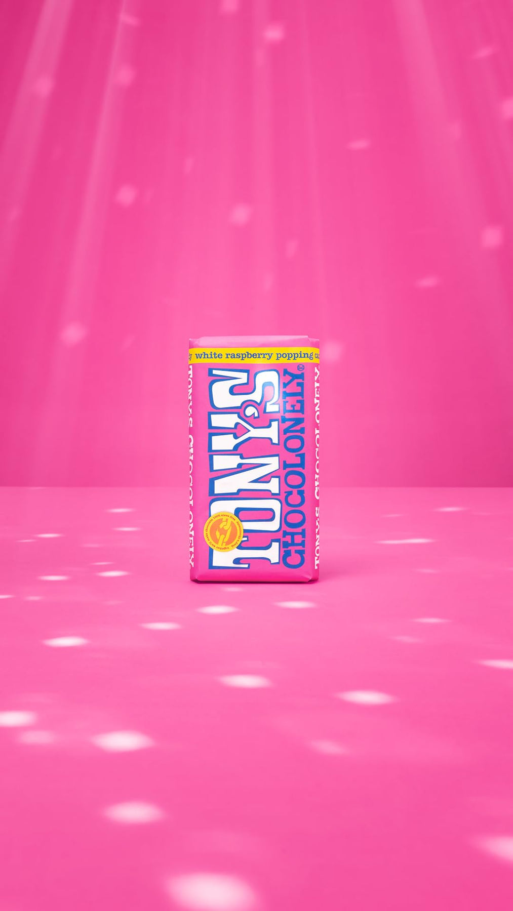 Indulge in the playful crunch of Tony's Chocolonely White Raspberry Popping Candy Chocolate Bar. This Belgian Fairtrade white chocolate bar blends smooth, creamy chocolate with tangy freeze-dried raspberry pieces and fun popping candy that crackles on your tongue.
