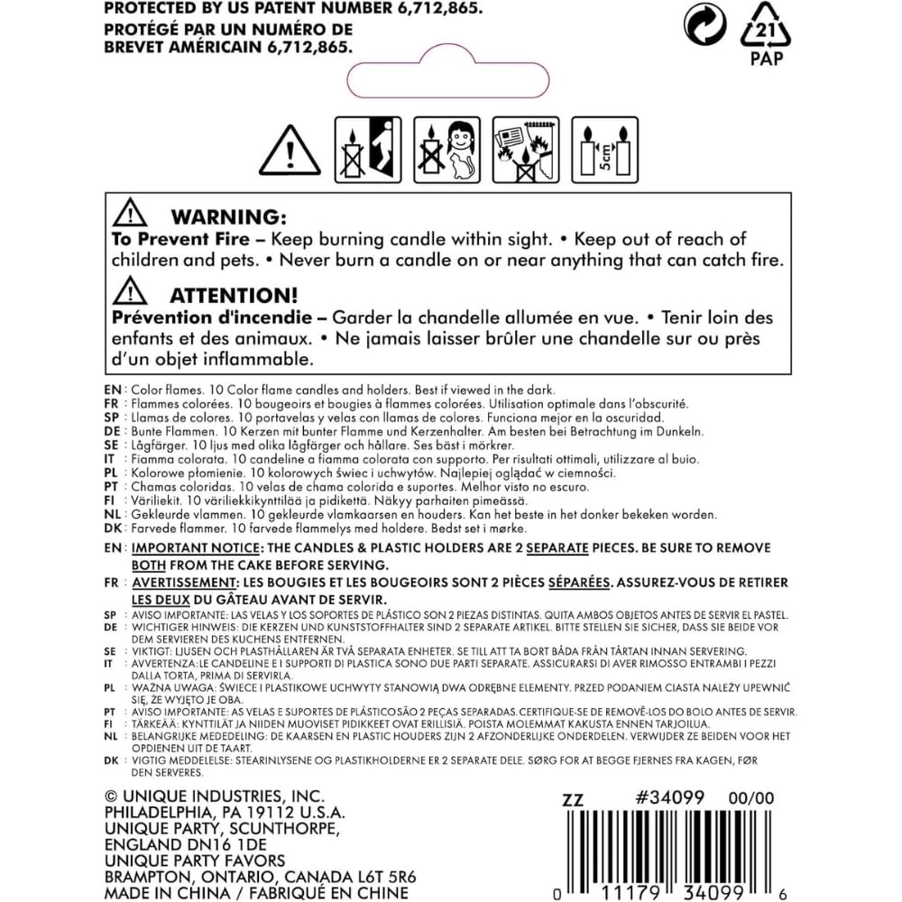 Unique Party 34099 - Coloured Flame Birthday Candles with Holders, Pack of 10