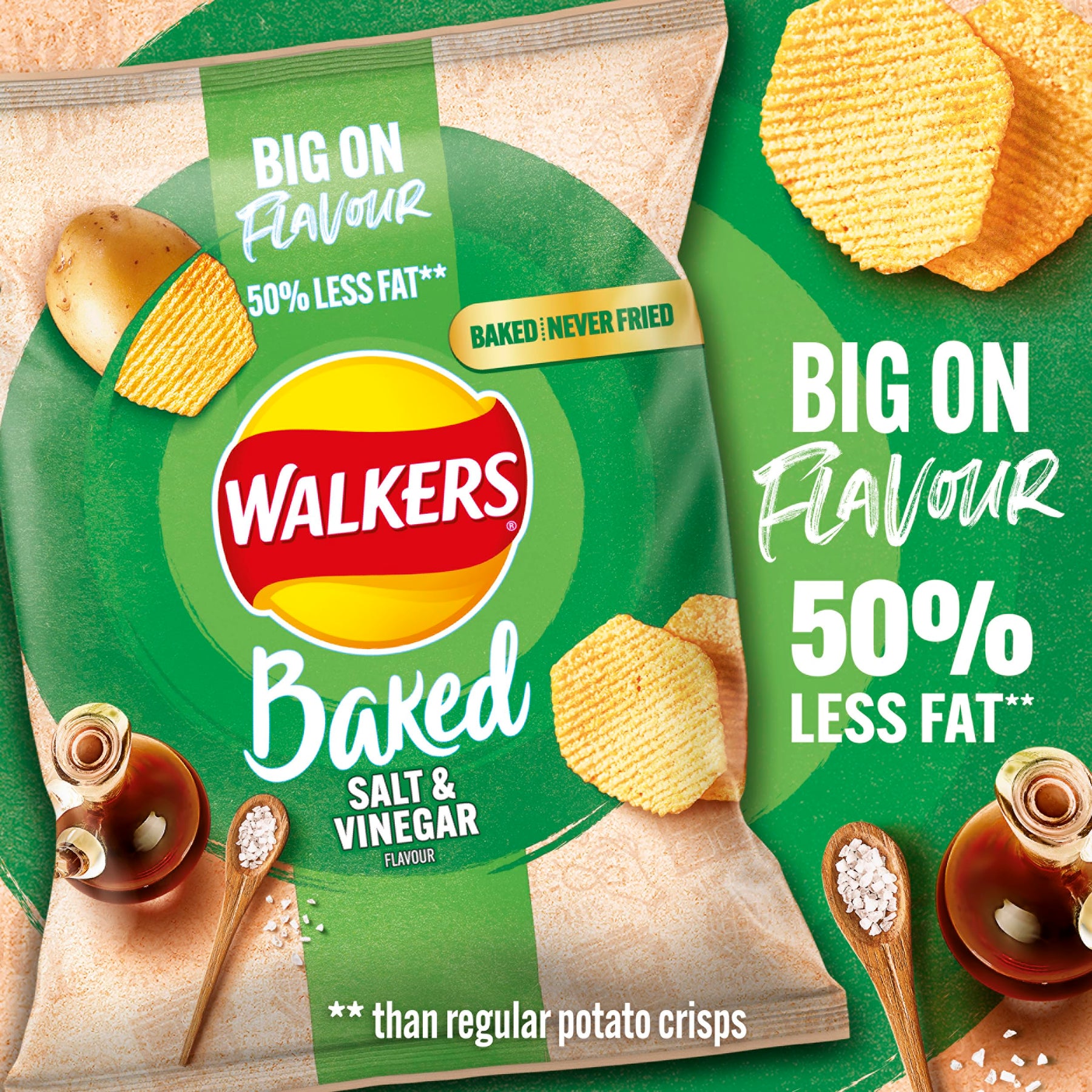 Add Walkers Baked Salt & Vinegar Crisps to your snack rotation for a tasty, lighter alternative that doesn’t compromise on flavour.