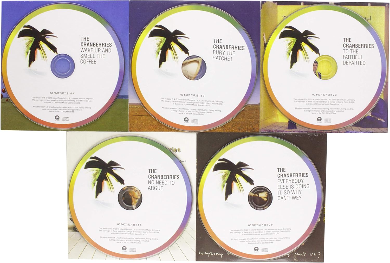 Explore the iconic sound of The Cranberries with this import 5-CD set, featuring their original studio albums: Everybody Else is Doing It..., No Need to Argue, To the Faithful Departed, Bury the Hatchet, and Wake Up and Smell the Coffee. This collection showcases the band's evolution across alternative rock and indie pop, highlighted by Dolores O'Riordan's distinctive vocals and introspective lyrics. A must-have for fans and music enthusiasts alike.
