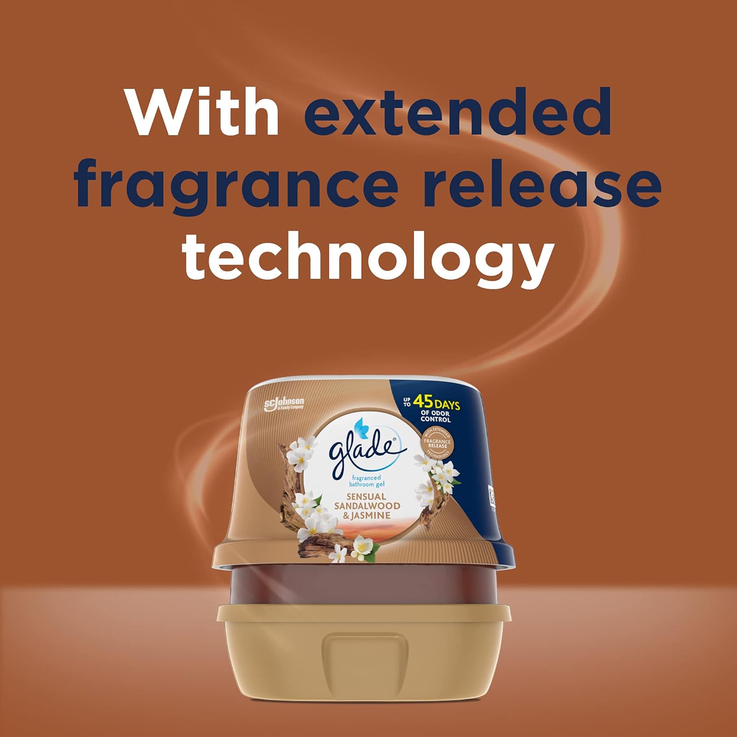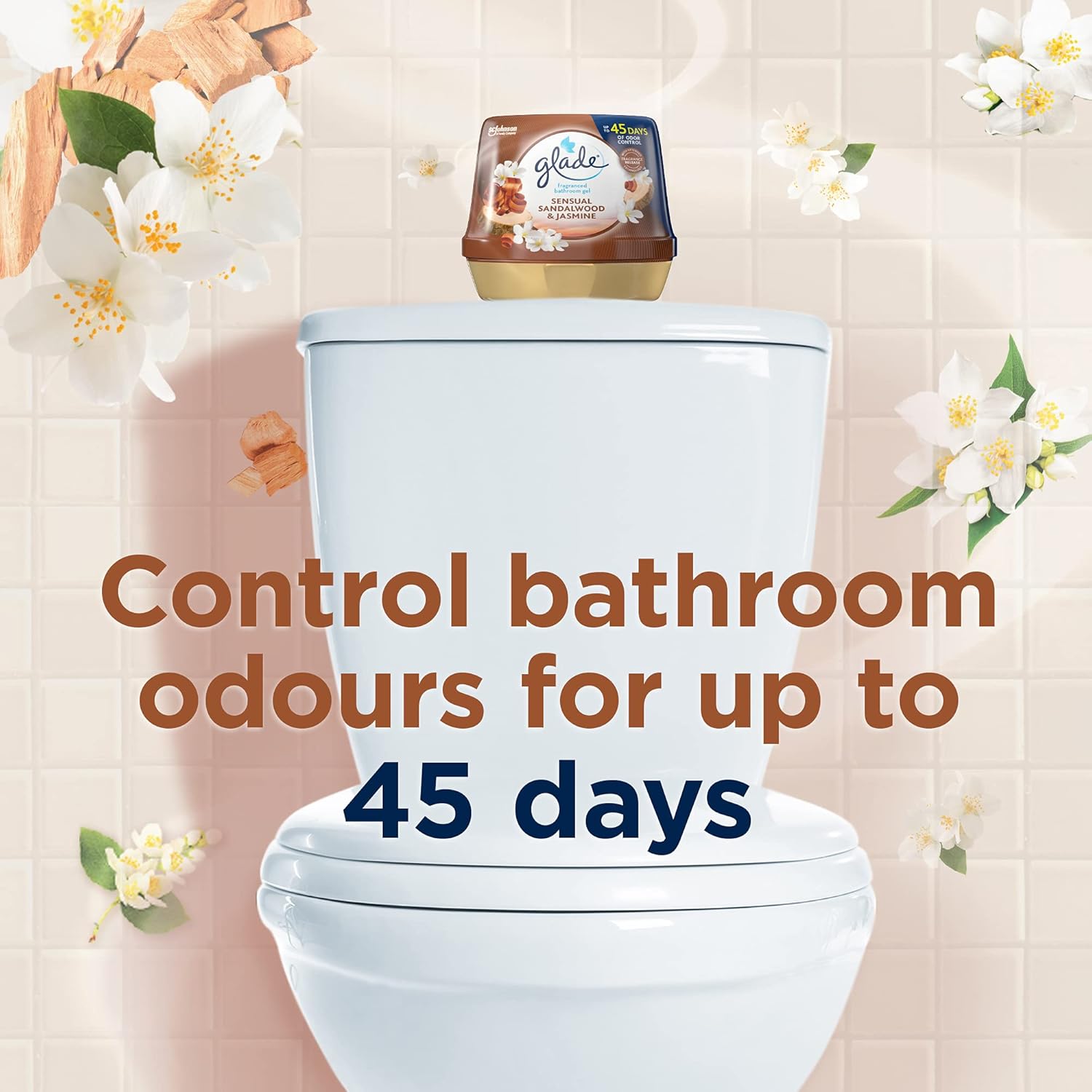 Refresh your bathroom with Glade Sensual Sandalwood & Jasmine Fragranced Bathroom Gel, a long-lasting air freshener designed to provide up to 45 days of continuous odour control. Infused with essential oils and featuring a luxurious blend of 11 scent notes, this gel freshener transforms your bathroom into a spa-like retreat without the need for electricity or batteries.