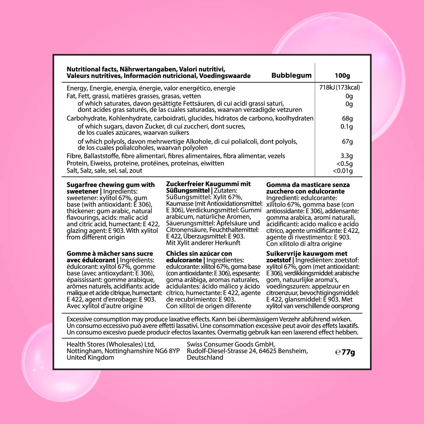 • Natural flavourings – for authentic bubblegum taste