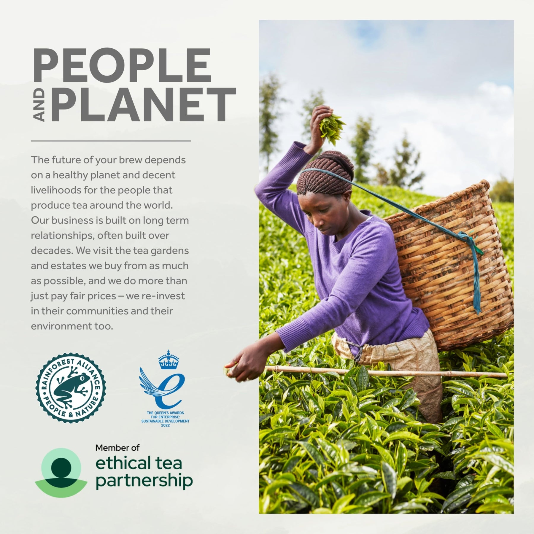 • Rainforest Alliance Certified and part of the Ethical Tea Partnership