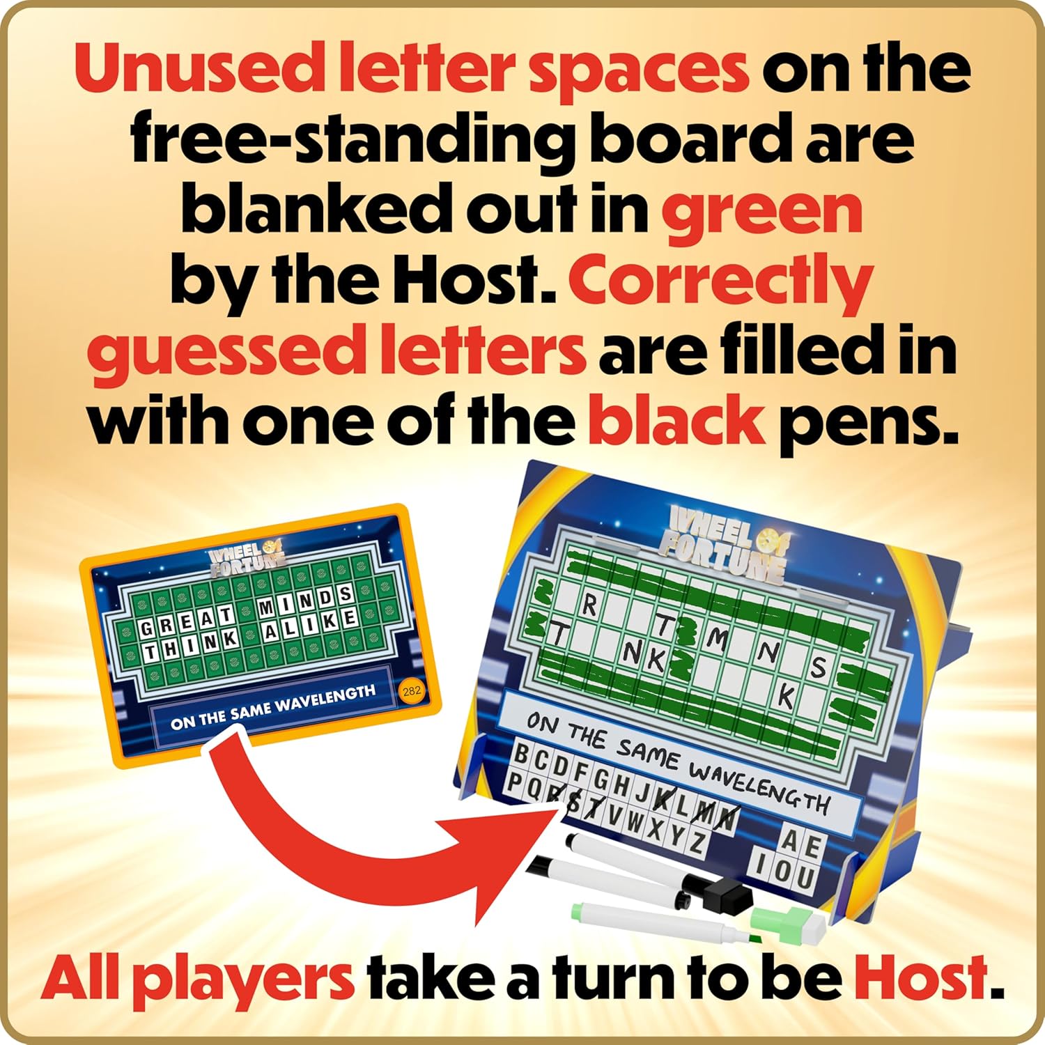• Players take turns being the host and solving word puzzles