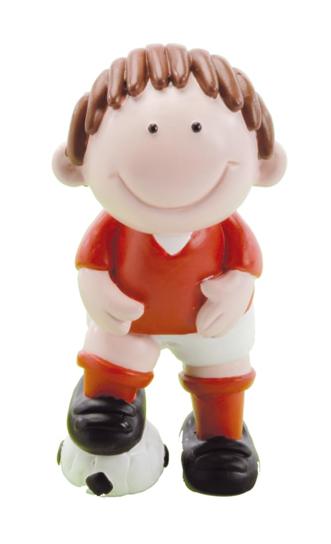 Add a festive and lasting touch to your birthday celebration with the Anniversary House Football Cake Topper Keepsake Set. This 2-piece set includes a hand-painted red footballer resin topper (6.5 x 7 cm) and a matching red 'Happy Birthday' motto topper, designed to bring a sporty theme to any cake. Crafted from sturdy unsaturated polyester resin, these toppers are built to last and double as a memorable keepsake after the celebration.