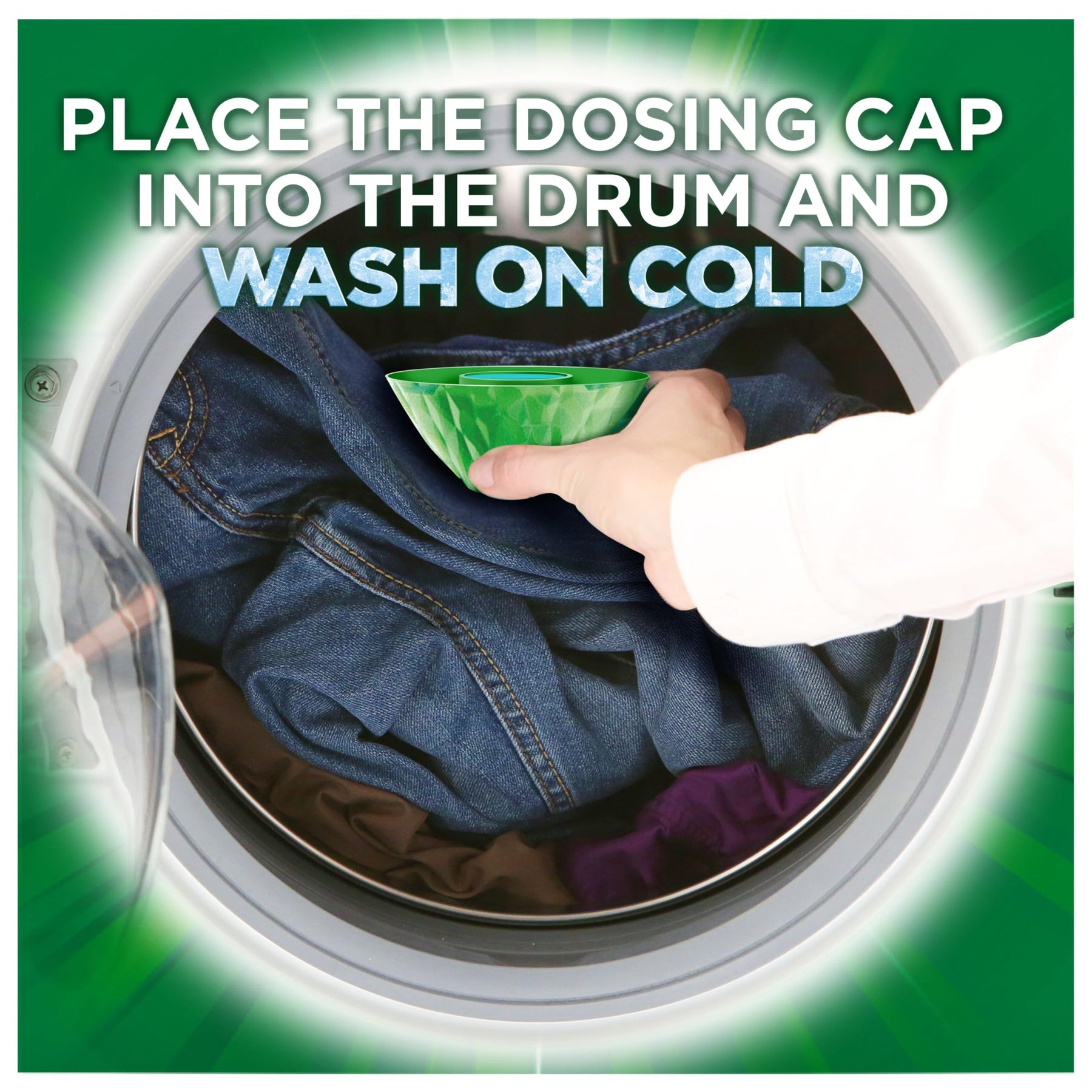 - Formulated for energy-efficient and fabric-friendly cold washing