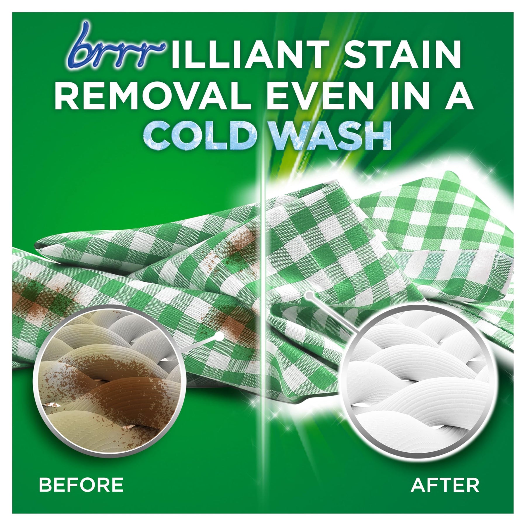 - Brrrilliant stain removal in cold and short washes (15°C or 15 minutes)