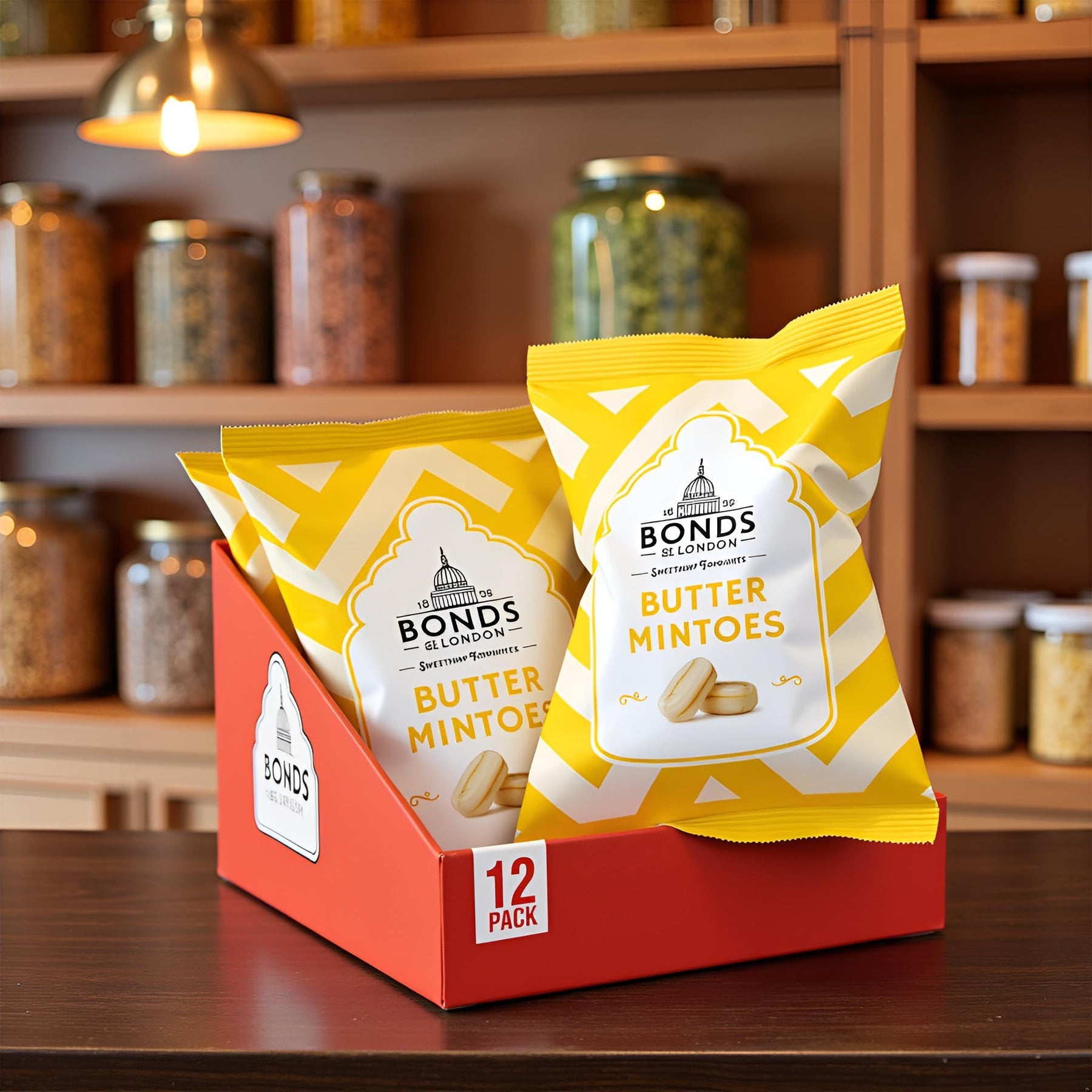 Bonds of London Butter Mintoes, Retro Boiled Sweets, Vegetarian Friendly, 120g (Pack of 12)