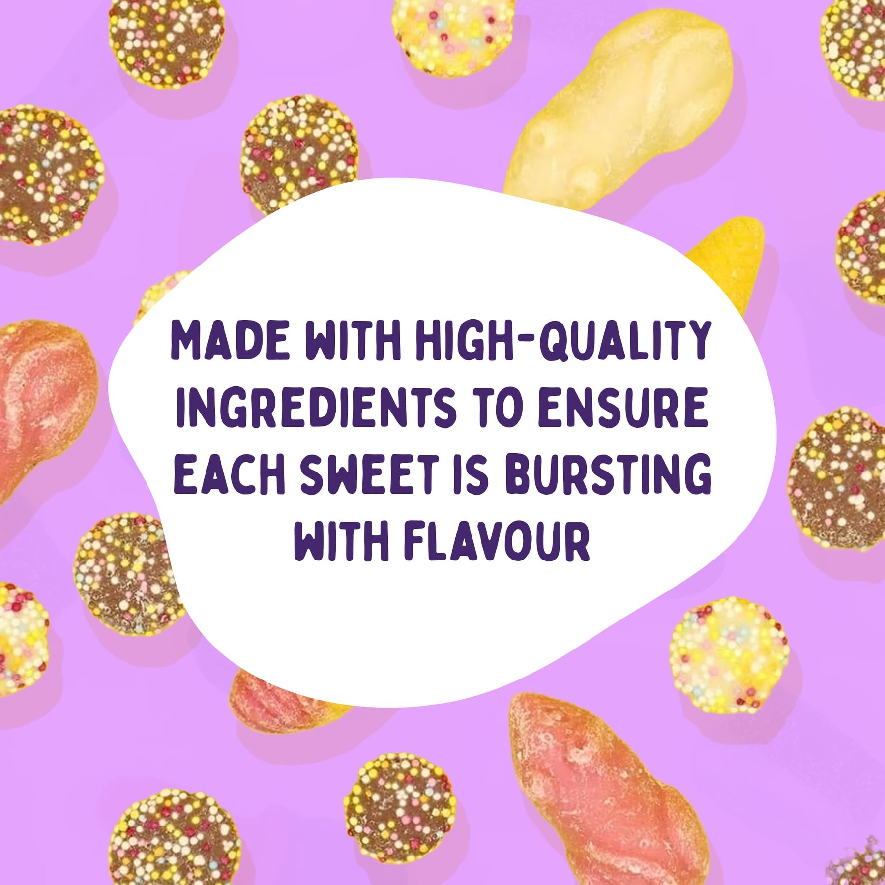 - Includes classic favourites: Pink & White Mice, Snowies, Jazzies, and creamy choco sweets