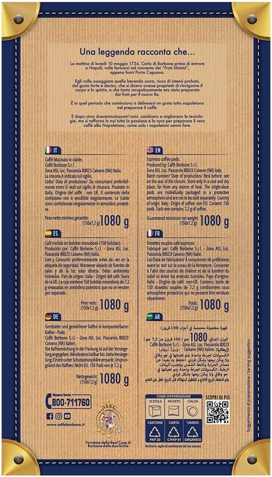 Caffè Borbone - Decaffeinated Coffee Compostable Pods (150 Pods, ESE 44mm)