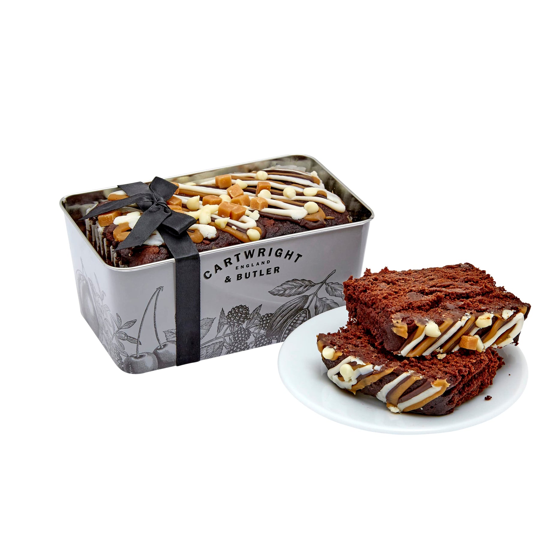 A truly decadent chocolate loaf cake, perfect as a luxurious treat or thoughtful gift. Ideal for enjoying with afternoon tea or celebrating special occasions like birthdays and housewarmings. Presented in a decorative, reusable rectangular tin, this indulgent cake combines rich chocolate flavor with a convenient, stylish presentation.