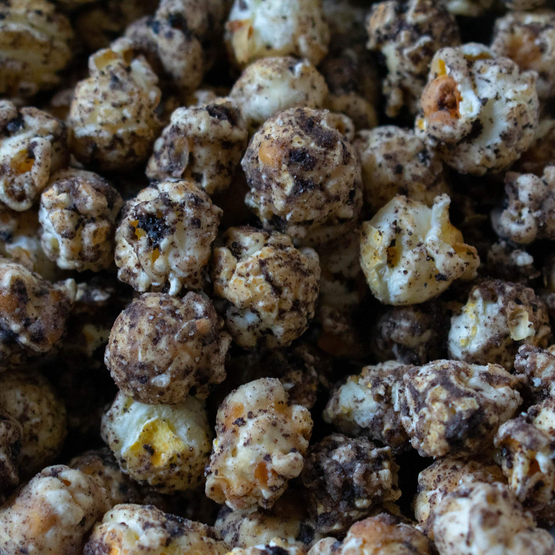 Indulge in the rich, creamy sweetness of Cookies & Cream Popcorn, a delicious blend of white chocolate flavoured caramel popcorn with crunchy cookie crumb pieces. Perfectly crafted for those who love gourmet snacks with a fun twist.
