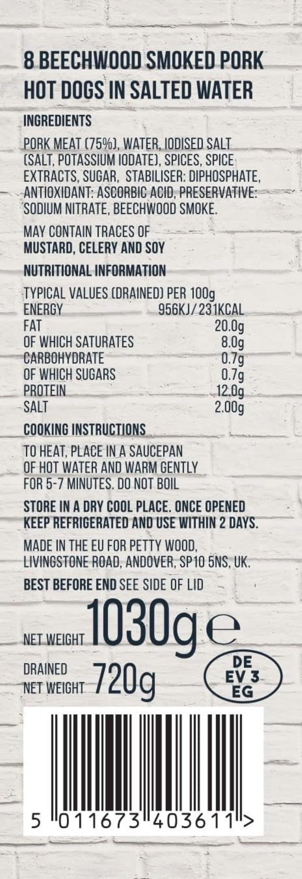 Enjoy a gourmet grilling experience with Dino’s Famous Brooklyn Big Dogs. These 8 large, beechwood-smoked pork hot dogs come packed in a juicy brine, delivering robust flavour and rich texture in every bite. Perfect for BBQs, cookouts, or classic American-style meals, this 720 g jar offers smoky, savoury goodness that elevates any gathering.