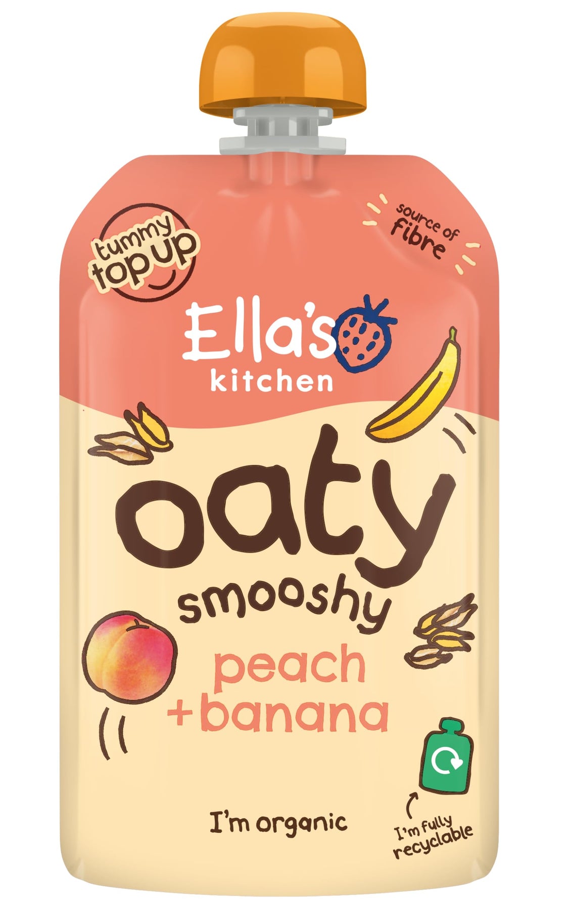 Delight your little one with Ella's Kitchen Peach + Banana Oaty Smooshy, a delicious and nutritious organic oat and fruit blend perfect for toddlers 12 months and up. This ready-to-eat snack combines a 100% organic oat base with pureed peaches, bananas, apples, apricots, and a hint of lemon juice for a naturally sweet, wholesome treat with no added ingredients.