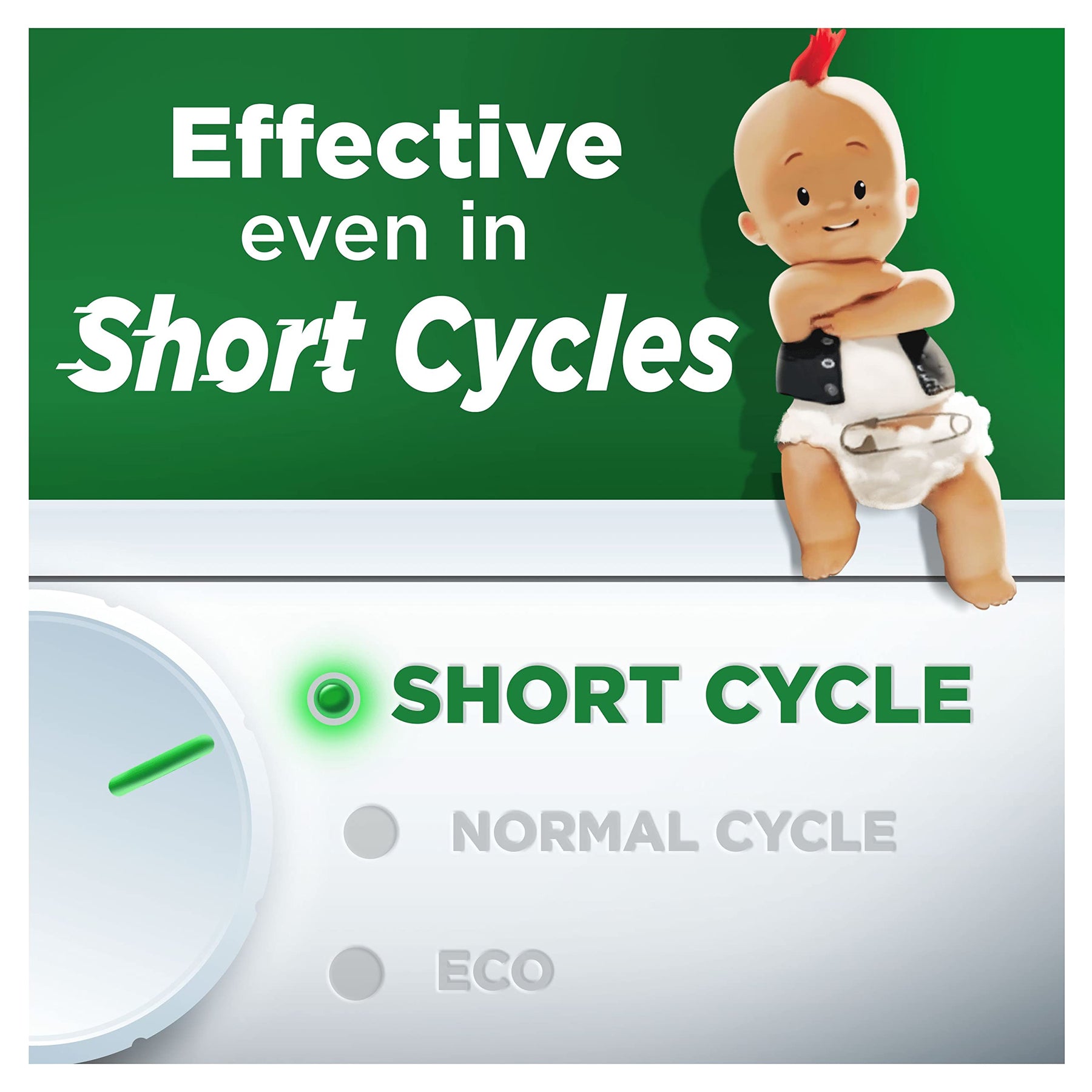 • Effective in short wash cycles