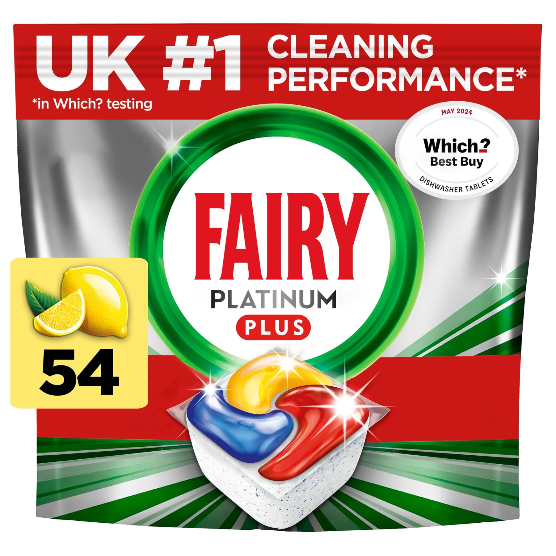 Fairy Platinum Plus All In One Dishwasher Tablets, Lemon, 54 Tablets