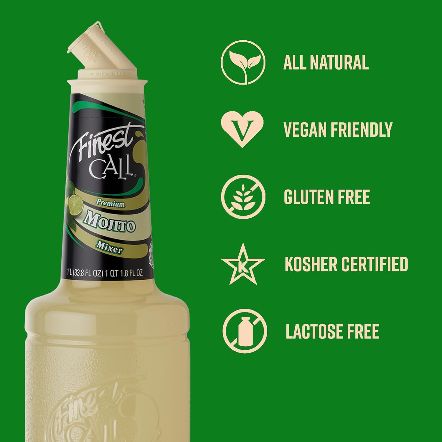 Finest Call Mojito Mix is a premium pre-made cocktail mix crafted using authentic, all-natural ingredients sourced from around the world. Featuring zesty Key limes from Mexico and a refreshing blend of mint, this mix delivers the true taste of a classic Cuban mojito with ease and consistency.