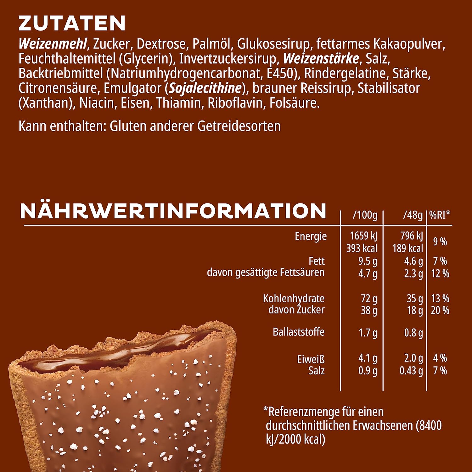 Kellogg's Pop-Tarts Frosted Chocotastic Toaster Pastries offer a delicious chocolate-flavoured filling encased in a sweet, frosted pastry. Perfect for a quick breakfast or snack, these toaster pastries are made with no artificial colours or flavours and are suitable for vegetarians.
