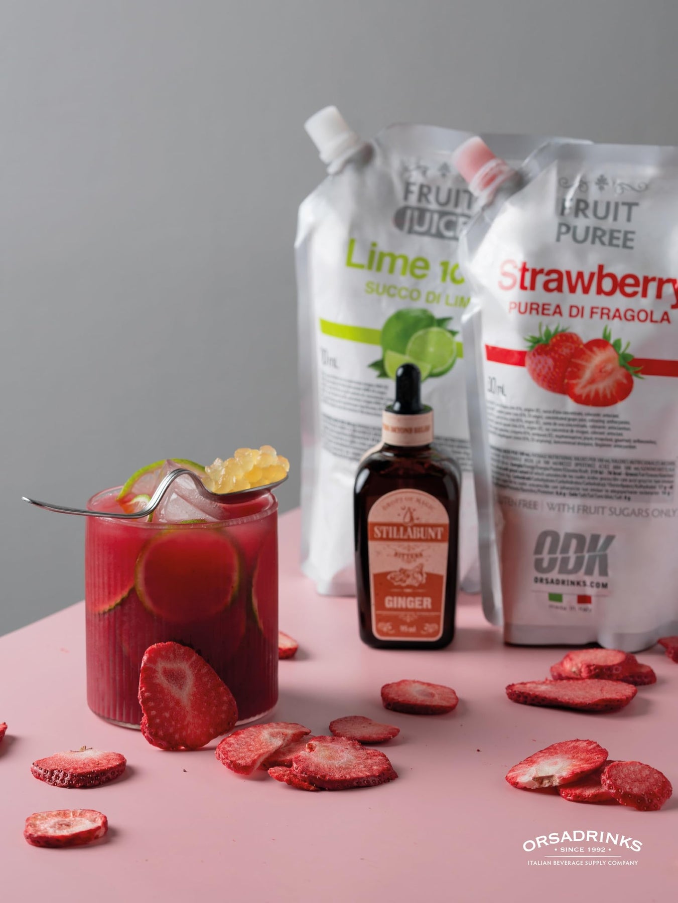 Elevate your culinary and mixology creations with ODK's rich, natural strawberry puree – a must-have ingredient for flavor and consistency.