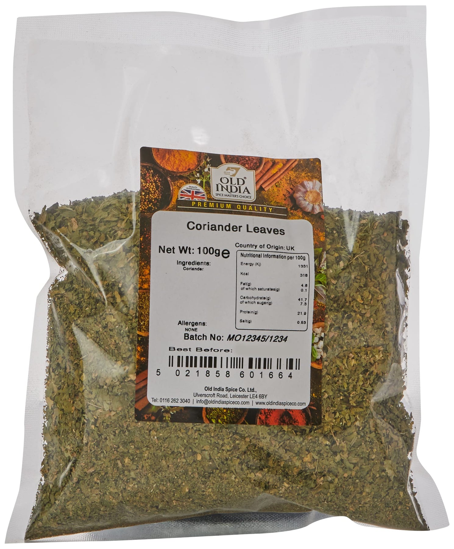 Old India Coriander Leaves are 100% natural, additive-free, and GMO-free, sourced from the origin of the ingredient and packed in a vegetarian atmosphere to ensure purity and freshness. Ideal for enhancing the flavor of curries, vegetable dishes, sauces, soups, stews, and more.