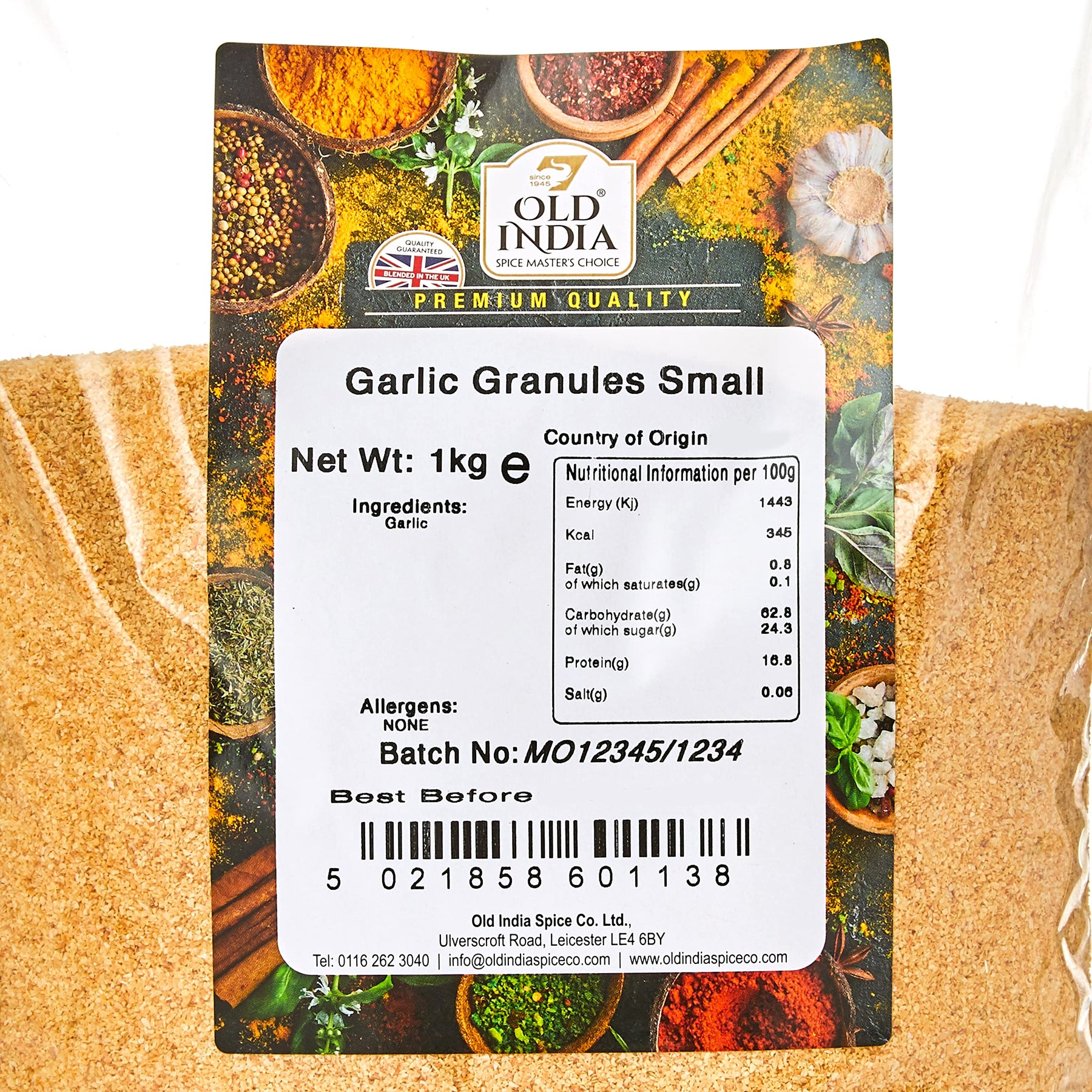 Old India Garlic Granules are a premium, 100% natural seasoning made from pure garlic. Ideal for enhancing a wide range of dishes, these granules can be added to curries, vegetable dishes, sauces, soups, stews, and much more.