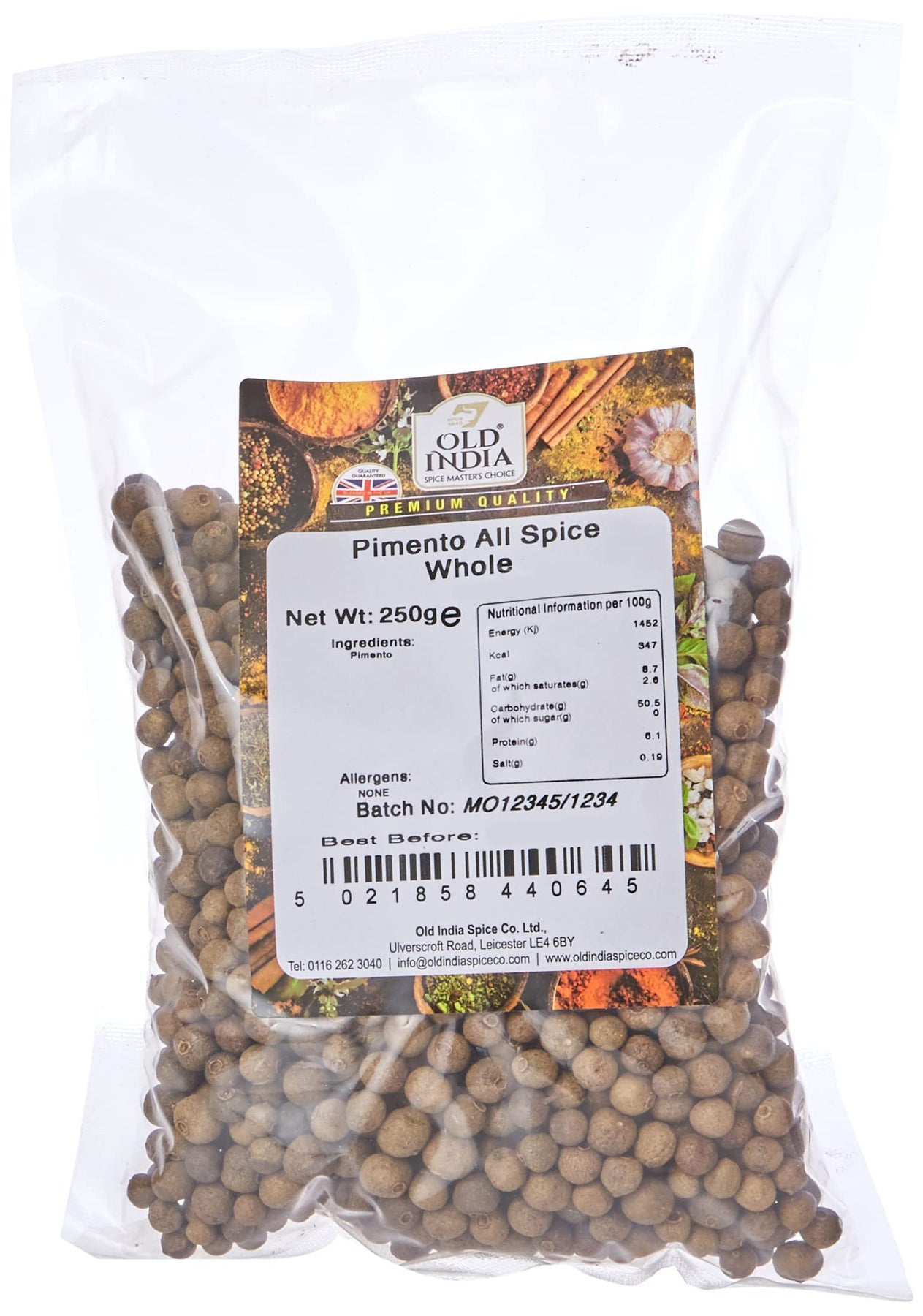 Old India Pimento Allspice, whole and carefully packed to preserve its natural flavor and aroma. Sourced from the origin of the ingredient and packed in a vegetarian atmosphere, this allspice is 100% natural, additive-free, and GMO-free.