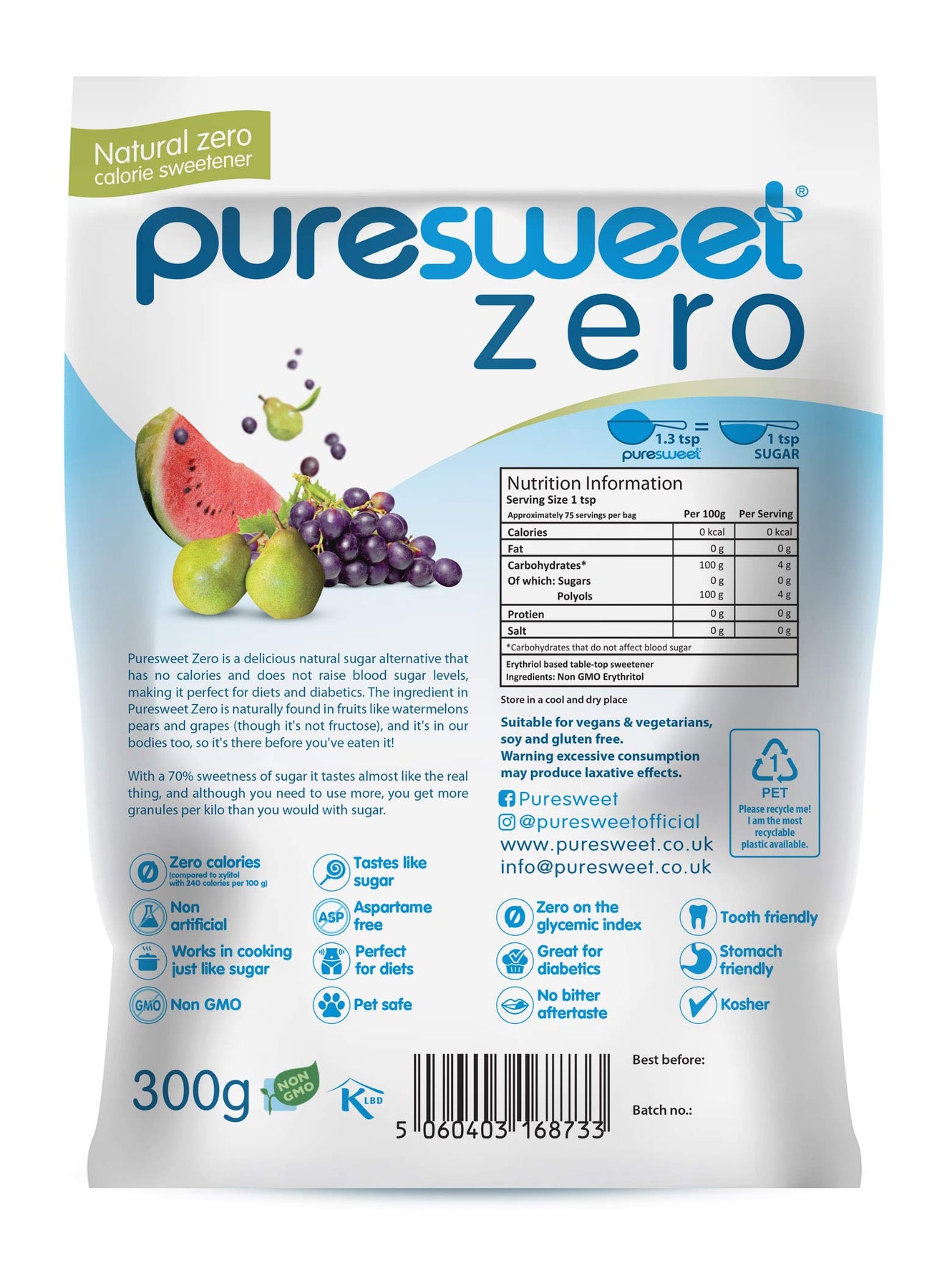 Puresweet Zero® 100% Natural Zero Calorie Sweetener 300g - No Bitter Aftertaste