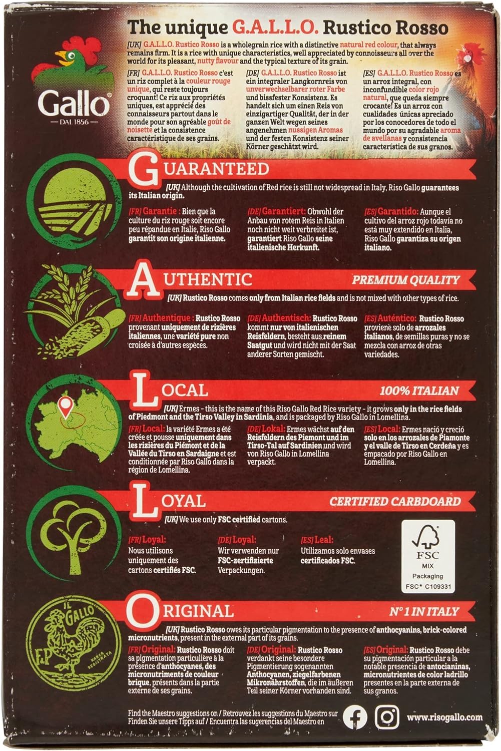 Experience the rich, aromatic flavor and creamy texture of Riso Gallo Rustico Rosso, a premium wholegrain red rice grown using sustainable farming practices. This Italian long-grain rice retains its firmness after cooking, offering a delightfully nutty taste and vibrant red hue that enhances a variety of dishes. Ideal for gourmet meals, it brings depth and richness to salads, risottos, and side dishes.