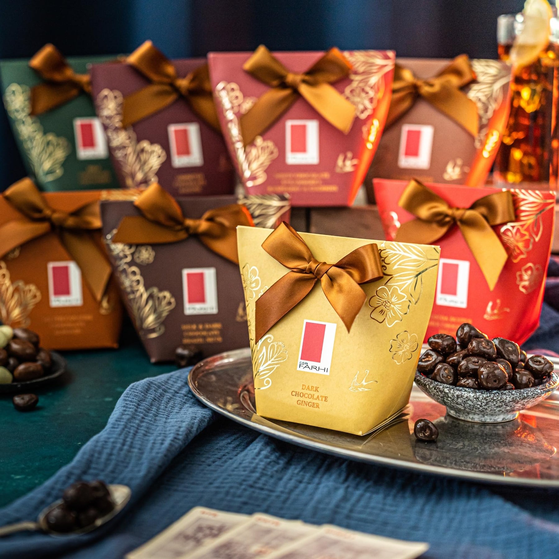 Indulge in the perfect harmony of rich dark chocolate and fiery crystallized stem ginger with Rita Farhi's luxurious chocolate-covered confection. Crafted using a time-honoured recipe, this exquisite treat blends traditional methods with modern craftsmanship, offering a bold and sophisticated flavour profile. Each piece is handcrafted and enrobed in premium Belgian dark chocolate (62%) made from the finest cocoa beans, ensuring a smooth, decadent finish.