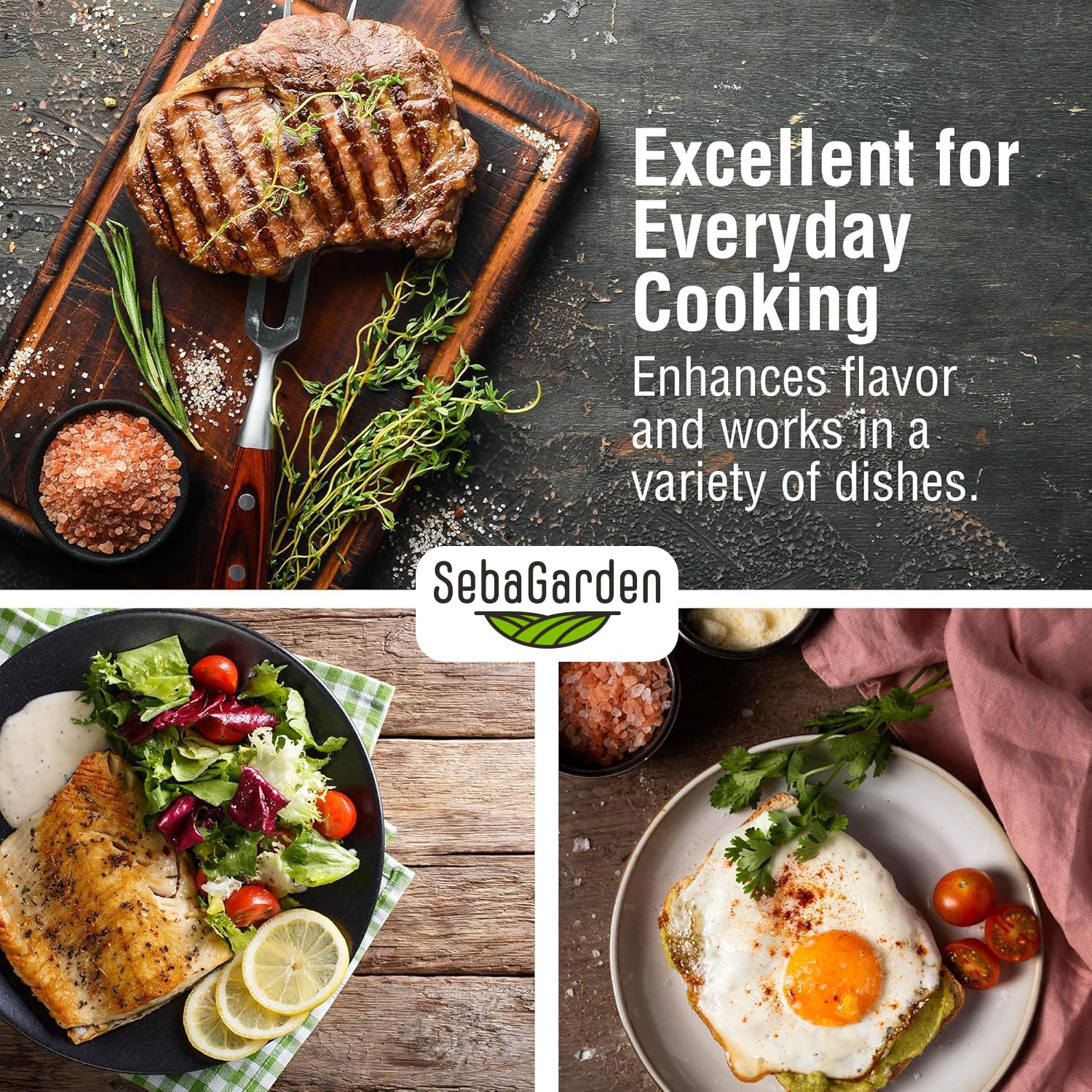 Enhance your cooking and wellness routines with Seba Garden's 100% Pure Himalayan Pink Salt. Sourced from the pristine Himalayan mountains, this unrefined, mineral-rich salt is perfect for elevating flavor in gourmet dishes or supporting relaxation through bath soaks and natural skincare.