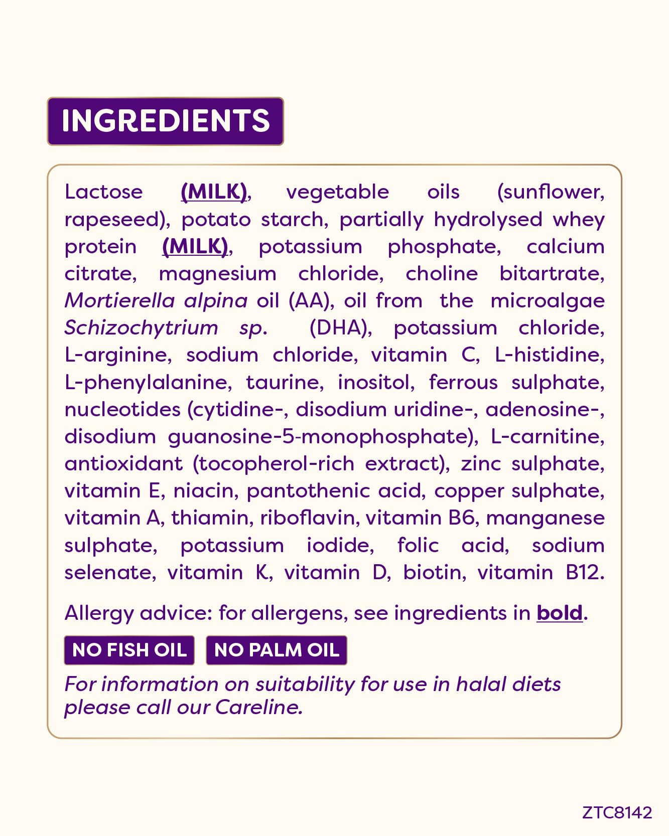 - Special Features: Thickened formula with added starch, partially hydrolysed whey protein, no palm oil
