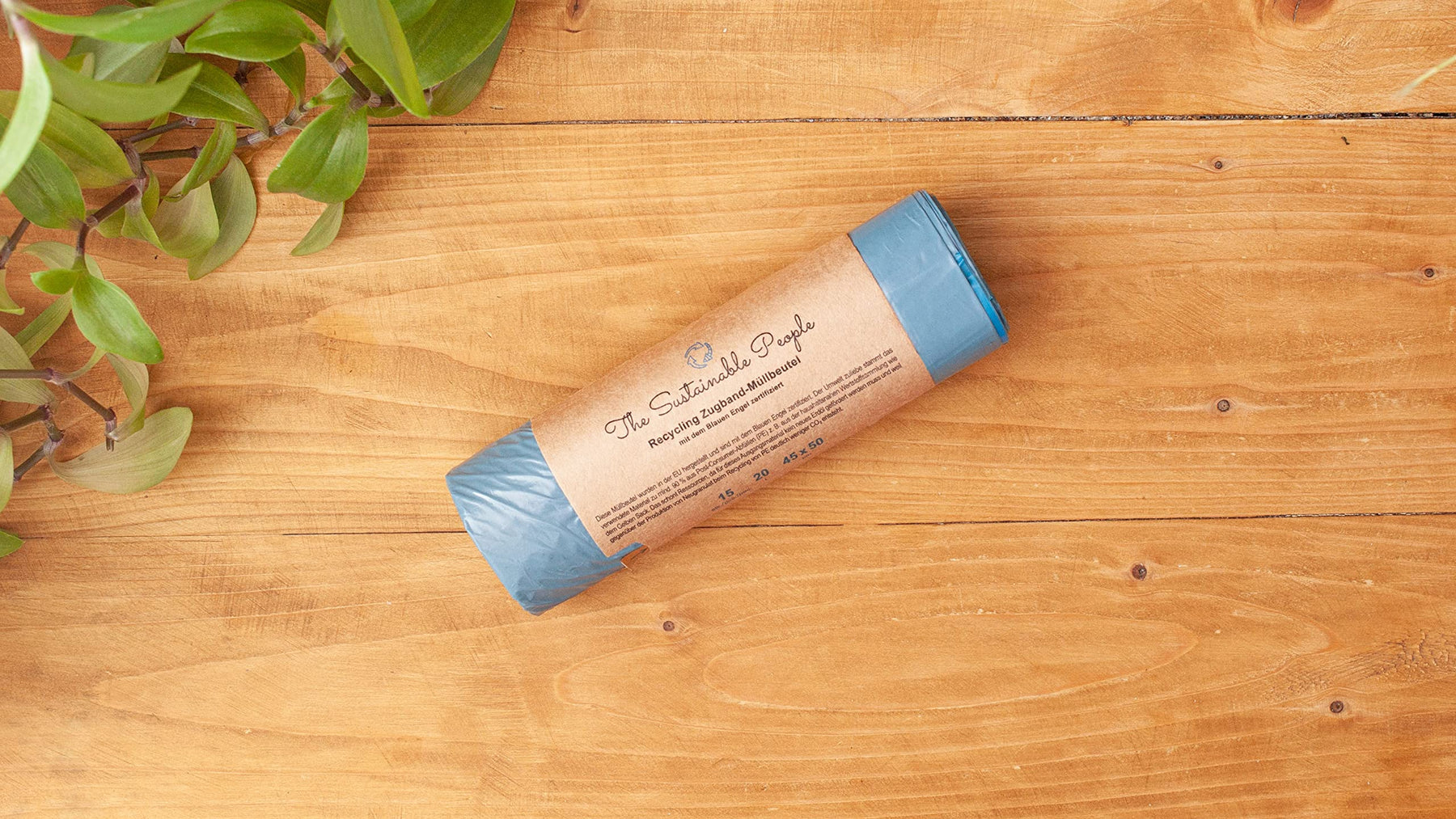 TSP recycled drawstring bin liners, 20 litres, come in a roll of 15 durable bags, ideal for clean recycling or residual waste collection. Made in the EU from at least 90% post-consumer waste (PE), these bin liners help conserve resources by reducing the need for virgin plastic derived from petroleum.