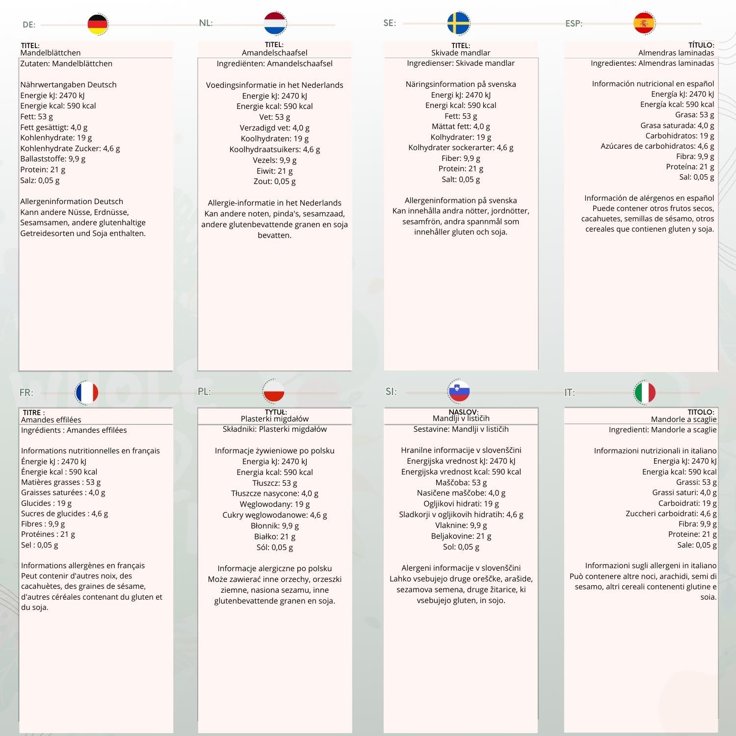 • Blanched and flaked for a smooth texture and reduced bitterness