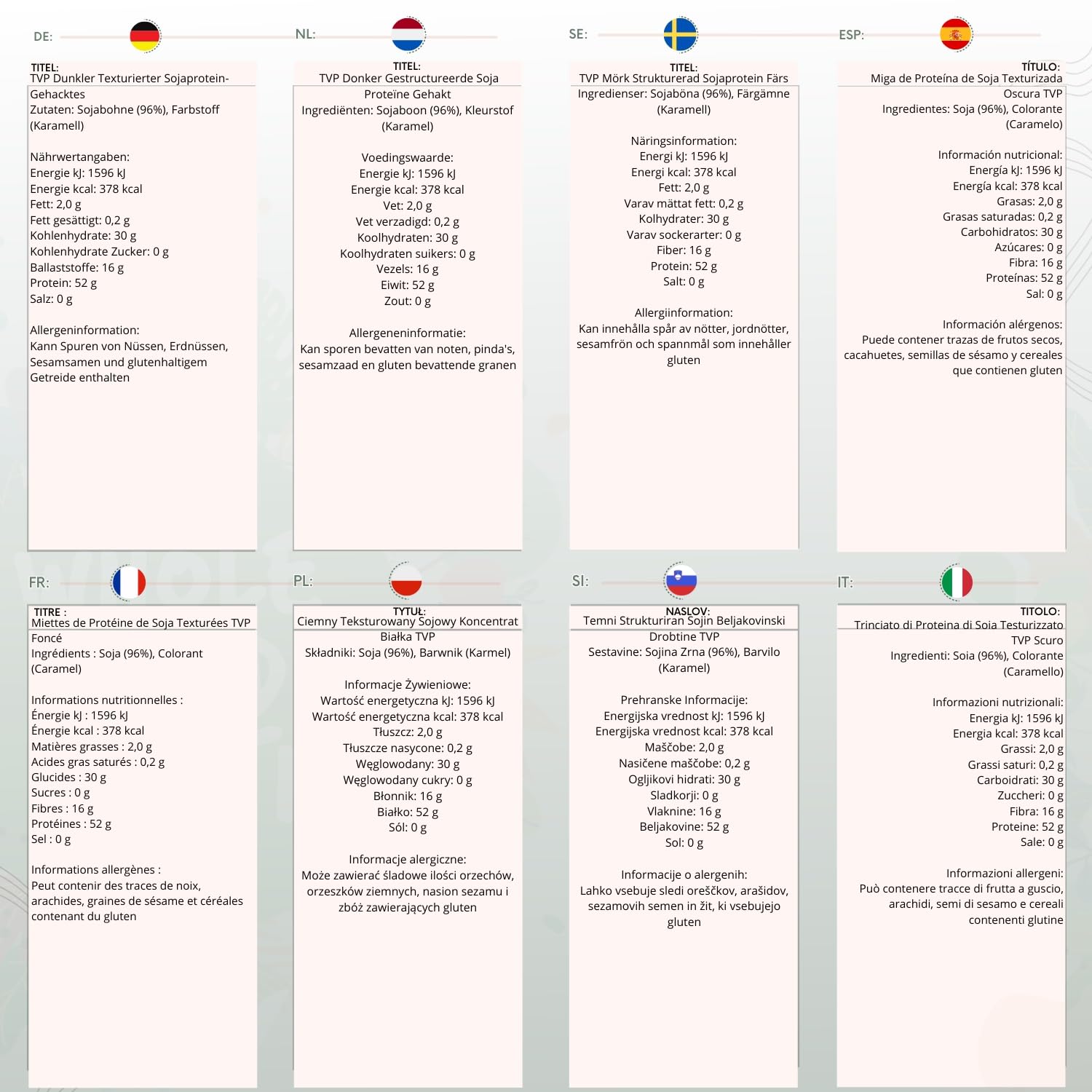 - Textured Soya Protein (TVP) made from non-GMO soya beans