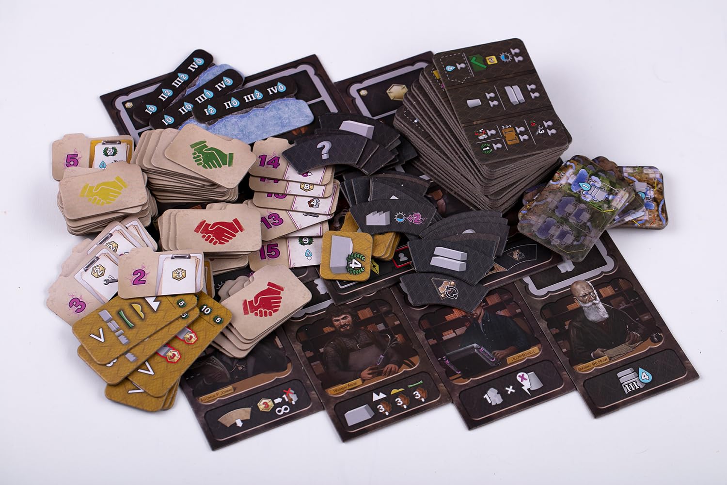 Barrage is a worker placement and resource management game set in a dystopian 1930s Alpine region. Players take on the roles of international companies competing to harness the power of rivers by building dams, raising their capacity, storing water, and channeling it through tunnels to powerhouses. Over the course of five rounds, players use their limited resources to fulfill power requirements, complete contracts, and outmaneuver rivals to claim victory. Countless combinations of companies, CEOs, starting conditions, bonuses, and objectives ensure high replayability and variety in gameplay.