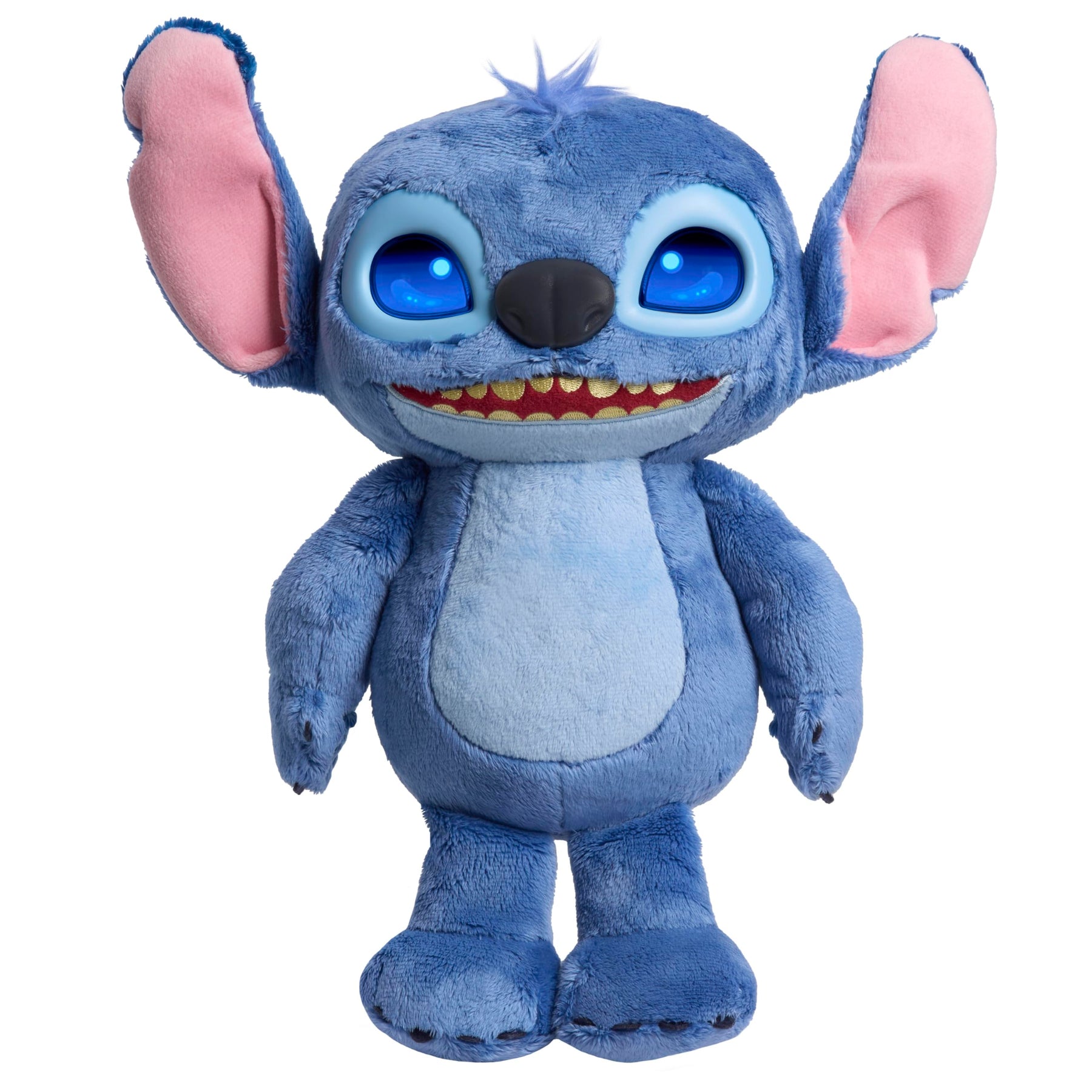 Bring home the mischievous alien from Disney's Lilo & Stitch with the Many Moods of Stitch interactive plush toy by Just Play. Inspired by the live-action film, this 14-inch blue plush features expressive LCD animated eyes and over 50 sounds and phrases that respond to touch and motion, making playtime full of surprises and imaginative adventures.