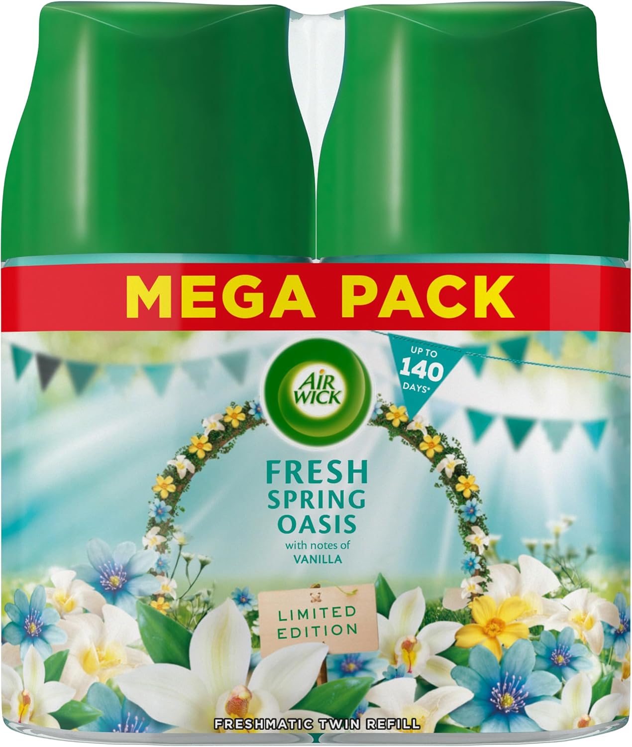Keep your home smelling fresh and clean around the clock with Air Wick Freshmatic Automatic Air Freshener Refills. Infused with natural essential oils, these refills provide continuous 24/7 fragrance delivery and effectively neutralise tough odours for up to 140 days on the lowest setting—perfect for maintaining a pleasant atmosphere in bathrooms, kitchens, bedrooms, and living areas.
