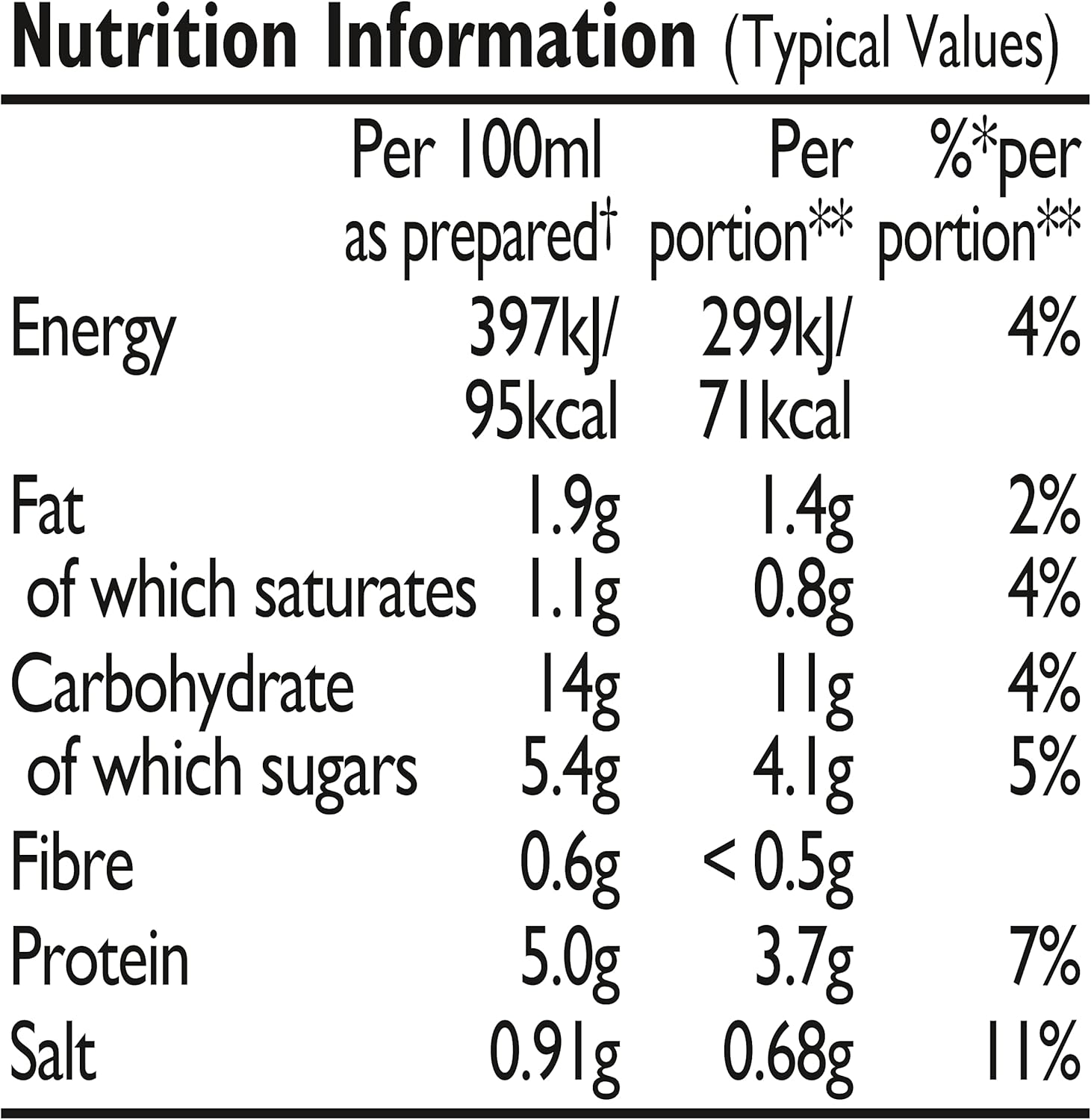 • Ready in minutes—just add 300ml of semi-skimmed milk