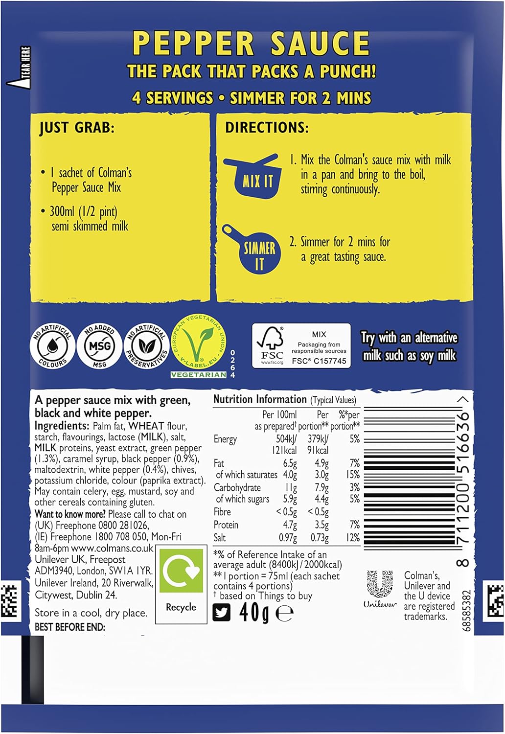 • Empty one sachet of Colman's Pepper Sauce Mix into a pan