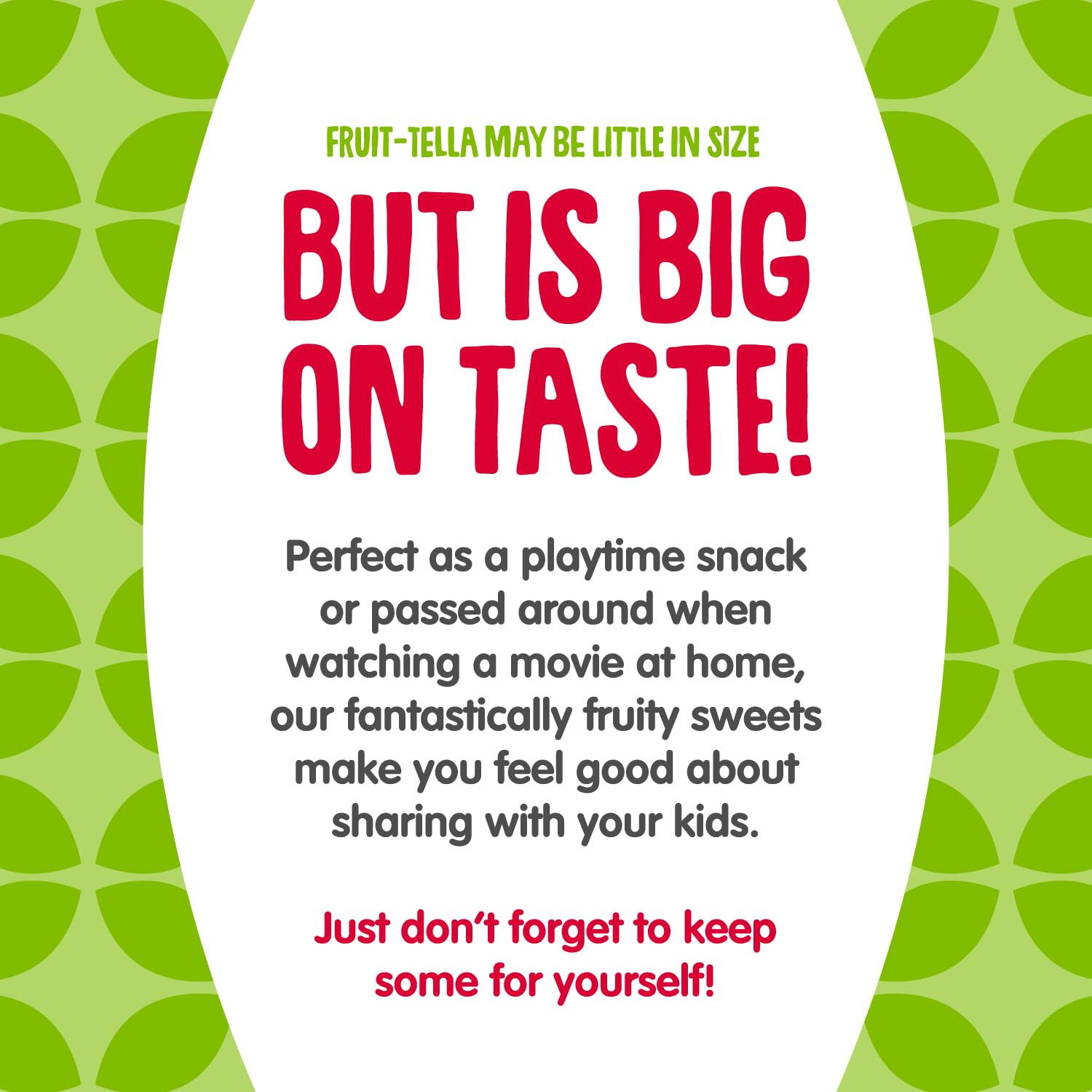 Fruit lovers inspired Fruittella to create delicious sweets made with real fruit juice and natural flavours and colourings. Chewy fruit-flavoured sweets in tasty Strawberry, Orange and Lemon flavours, made with natural strawberry, lemon and orange flavours for a burst of fruity taste in every bite.