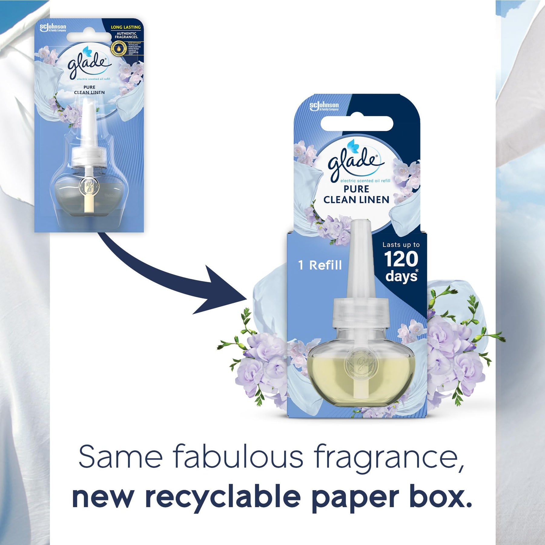 Create the ideal atmosphere in any room with Glade Plug in Air Freshener Refills. Designed to deliver long-lasting fragrance, these electric scented oil refills enhance your home with a whisper of crisp, airy innocence and pure inspiration. Perfect for daily use or as a final touch after cleaning, they blend seamlessly into your decor while continuously freshening your space.