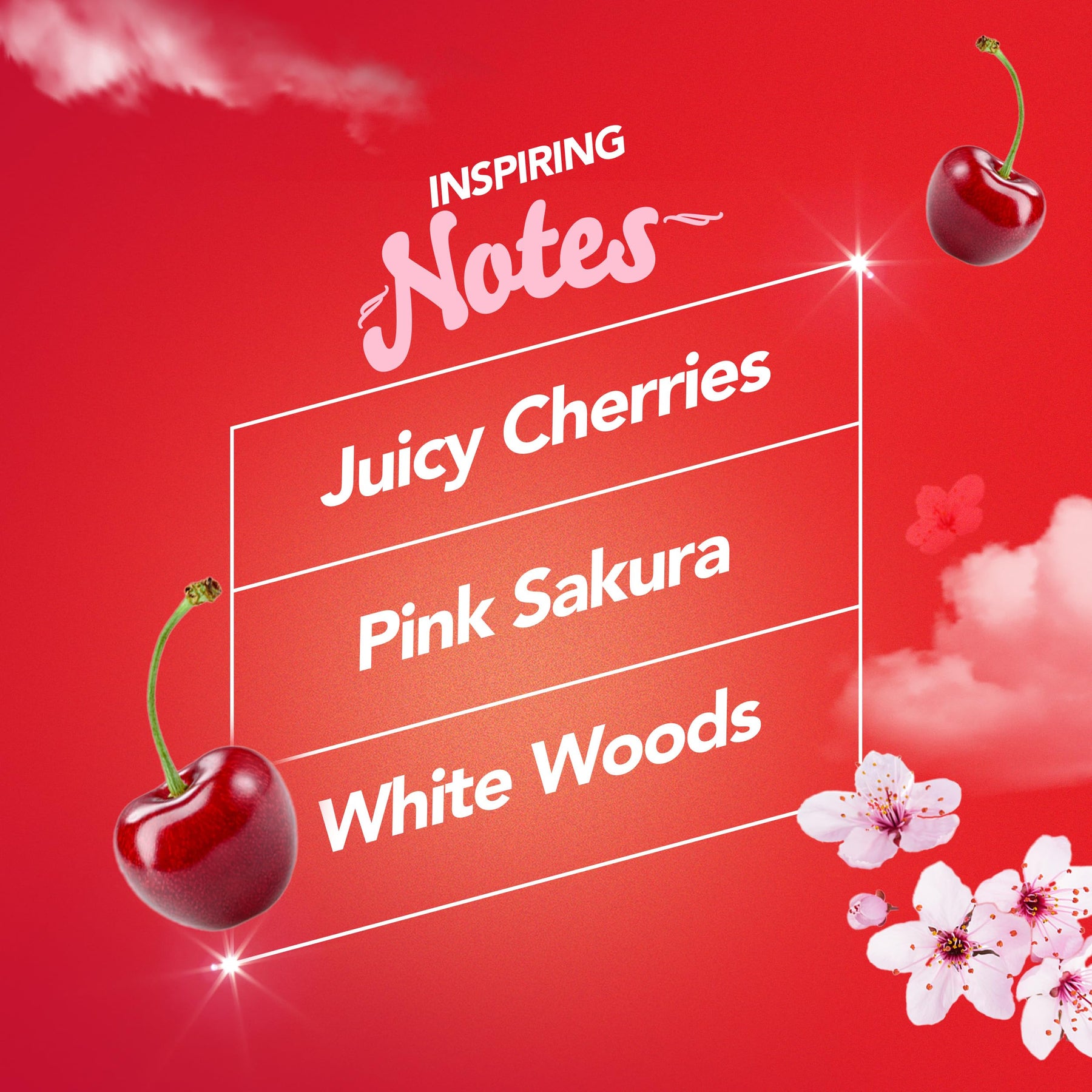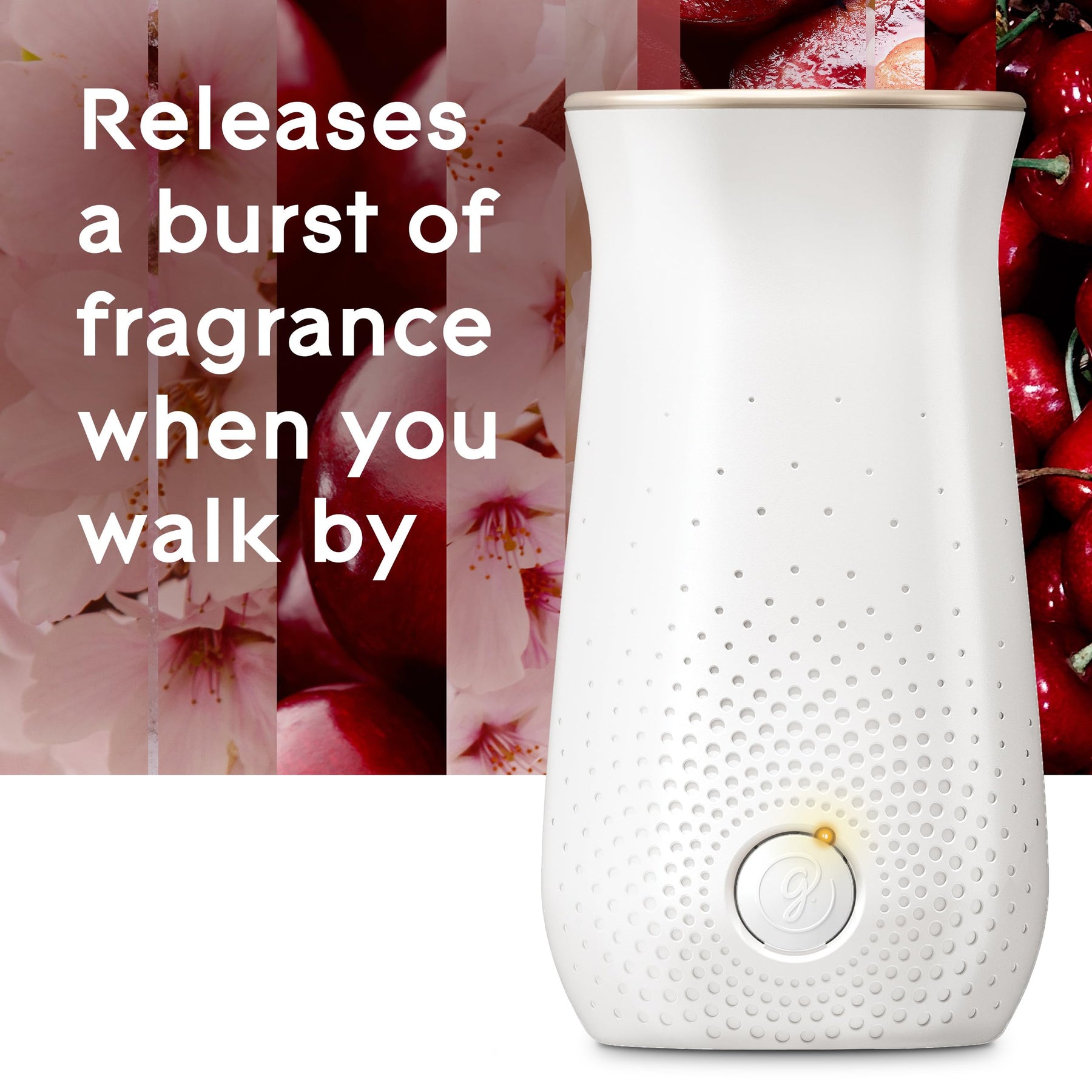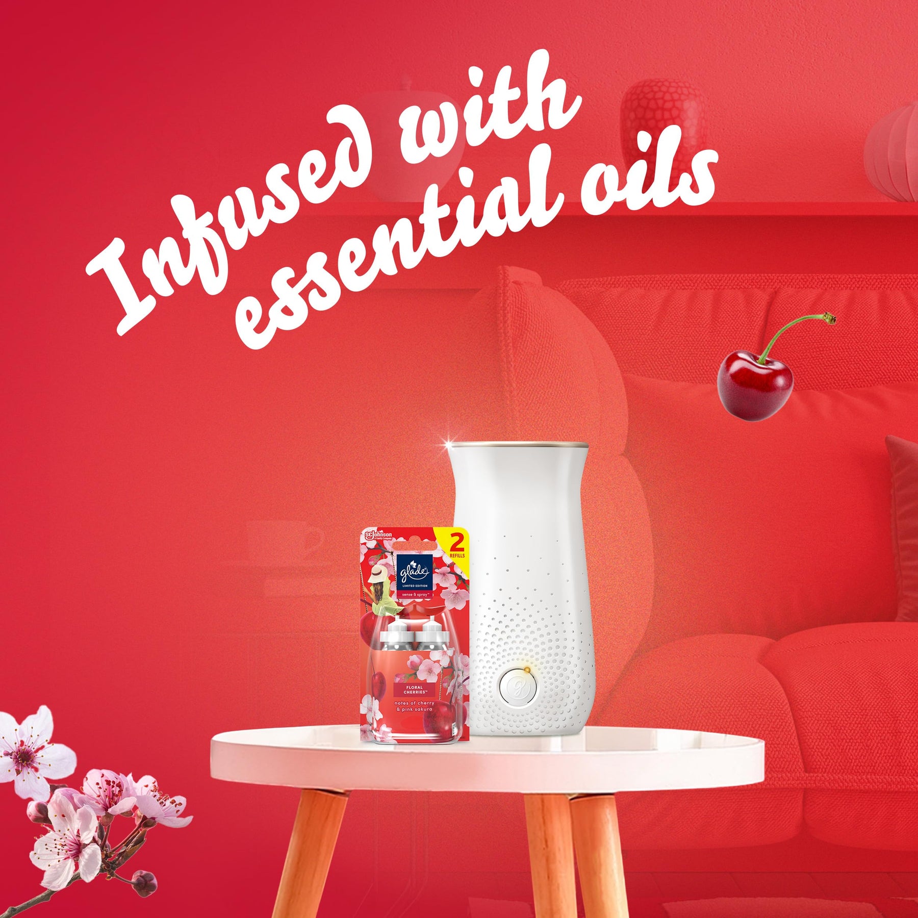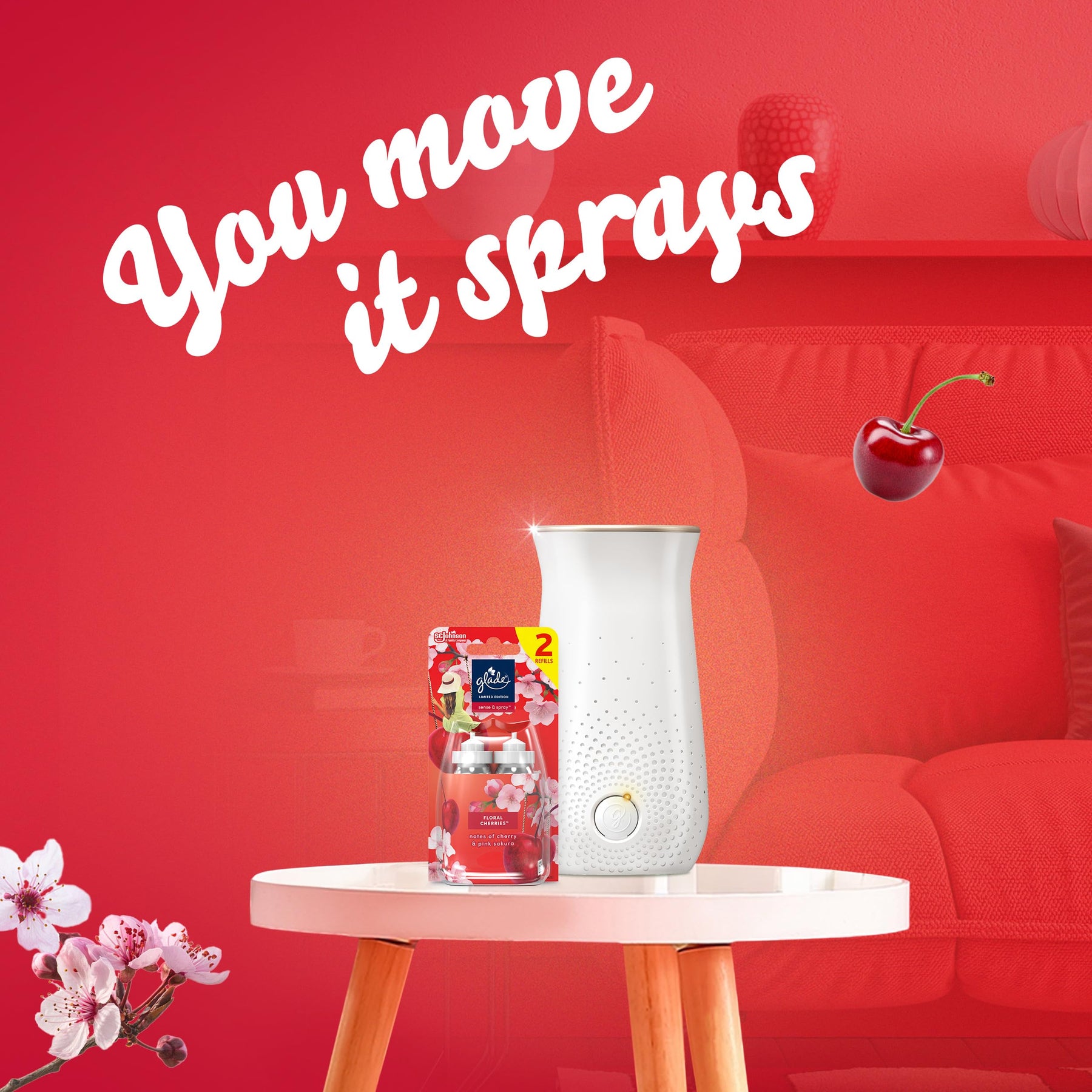 Refresh your space effortlessly and enjoy the vibrant, long-lasting scent of Floral Cherries with Glade’s innovative automatic air freshener system.