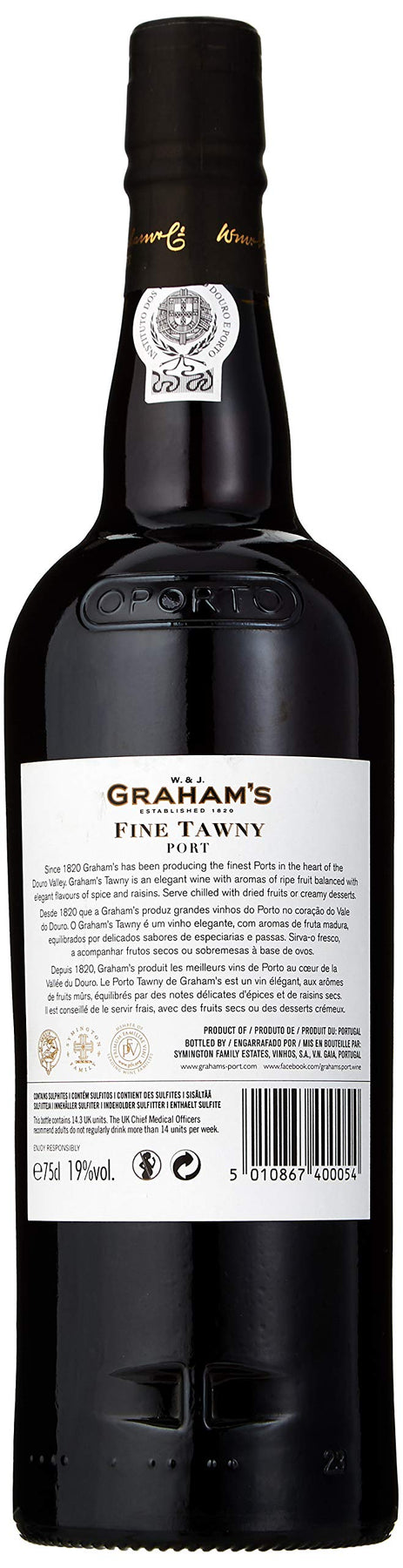 A very versatile style of Port, suitable for drinking on any occasion. Graham’s Tawny Port is more lightly textured and drier than Graham's Fine Ruby, offering a fine balance of fruitiness and nuttiness developed through maturation in seasoned oak casks. With its reddish tawny color, ripe fruit aromas, and hints of dried fruits, it delivers a slightly dry, elegant, and smooth palate. Serve chilled with dried fruits or creamy desserts for an exceptional experience.
