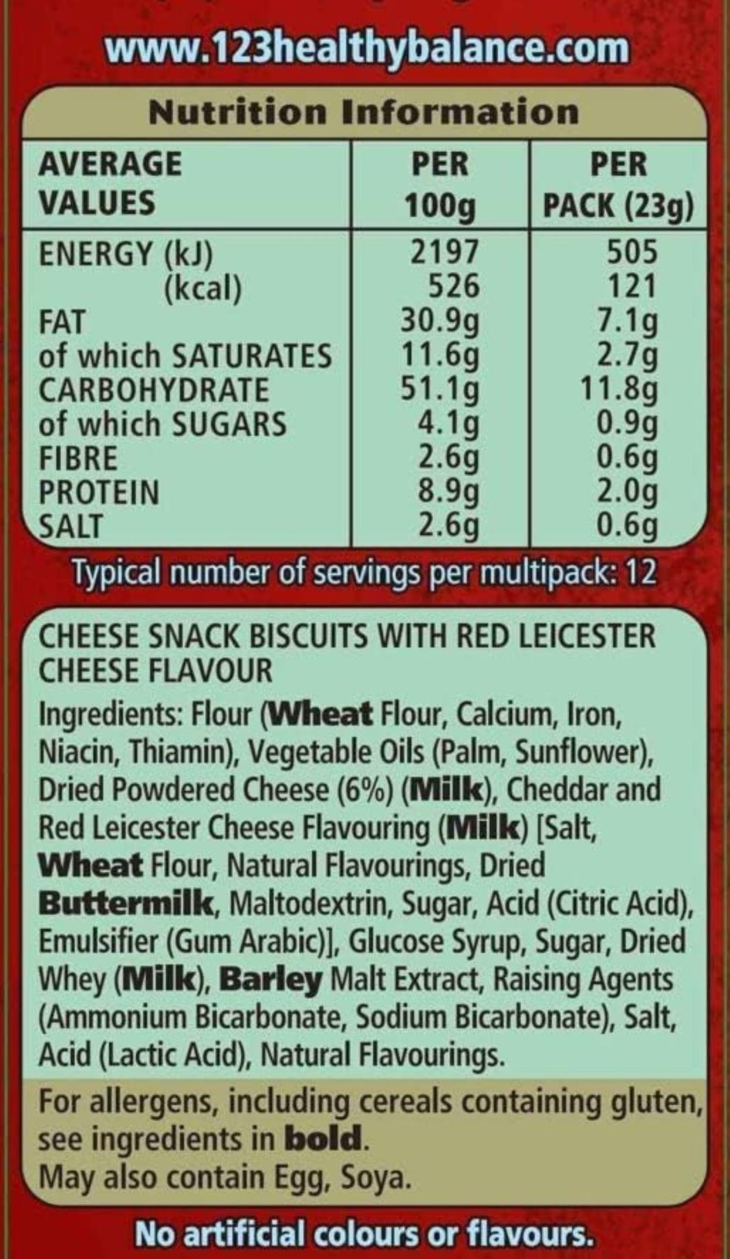 - Dietary: Vegetarian, oven-baked, no artificial flavours