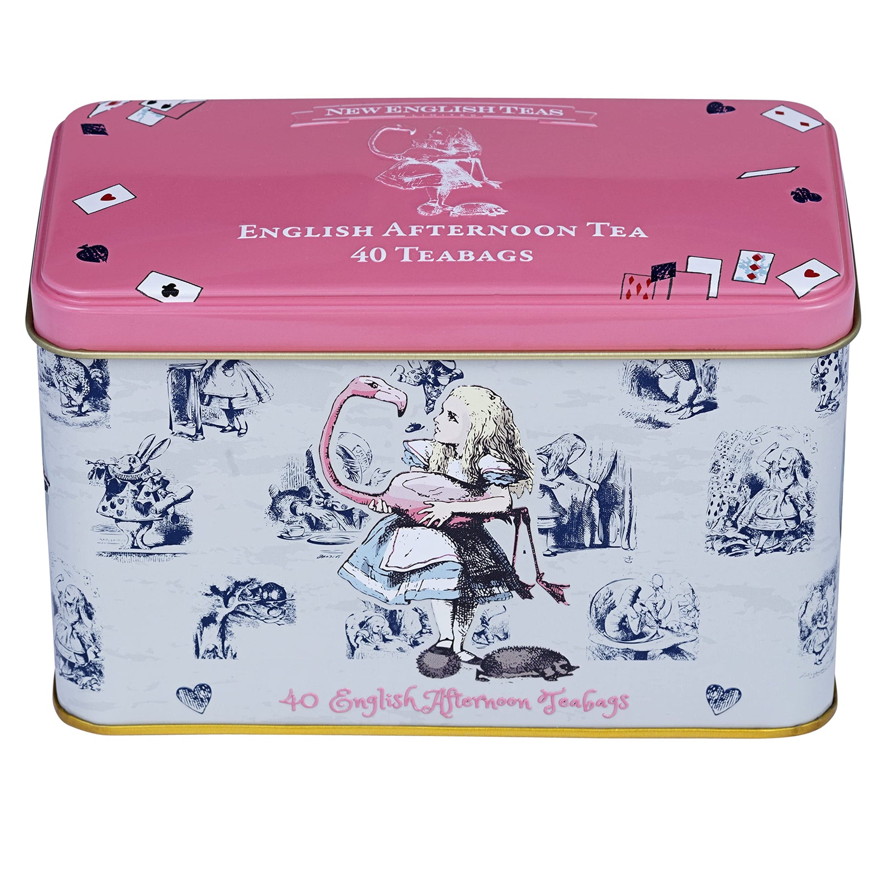 New English Teas - Pink Alice in Wonderland Tea Caddy with 40 English Afternoon Tea Bags